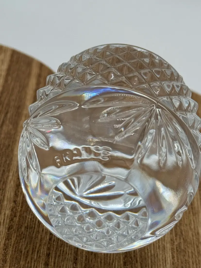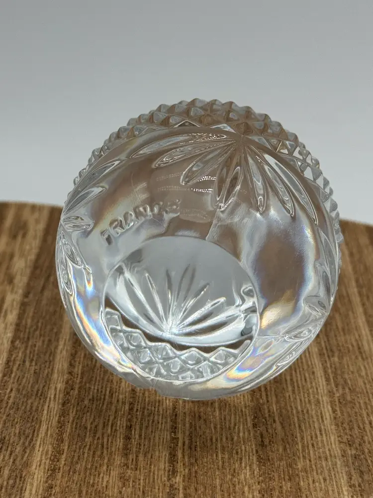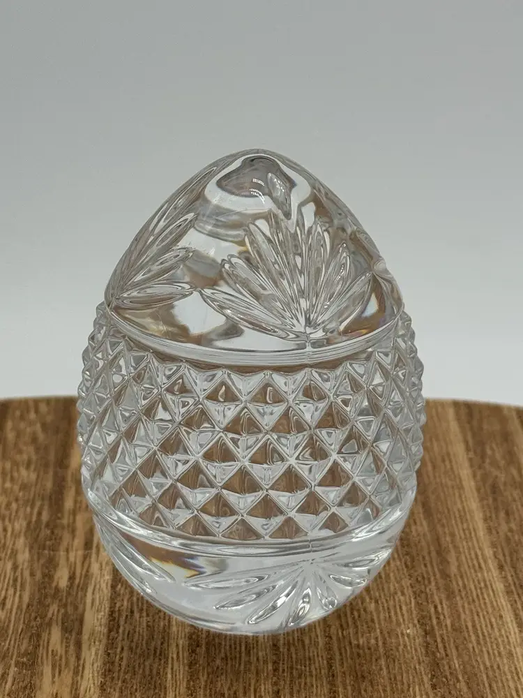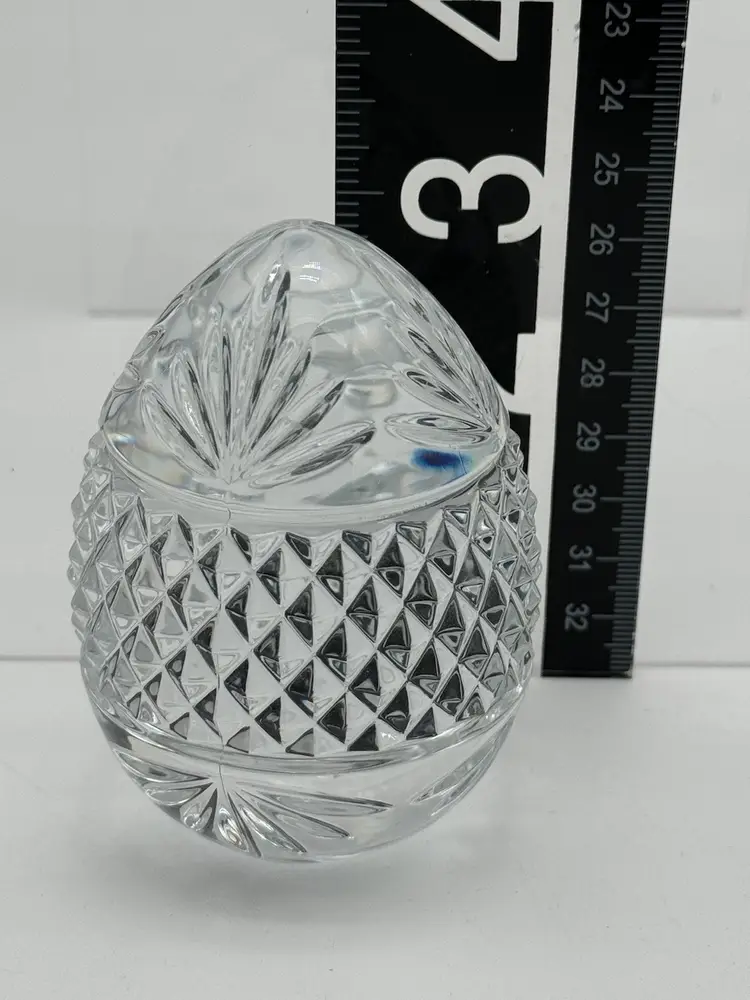 Very nice paperweight. Clear crystal egg. It is marked France. It has a a clear bottom. No chips or cracks. Please ask all questions before buying. Thanks!