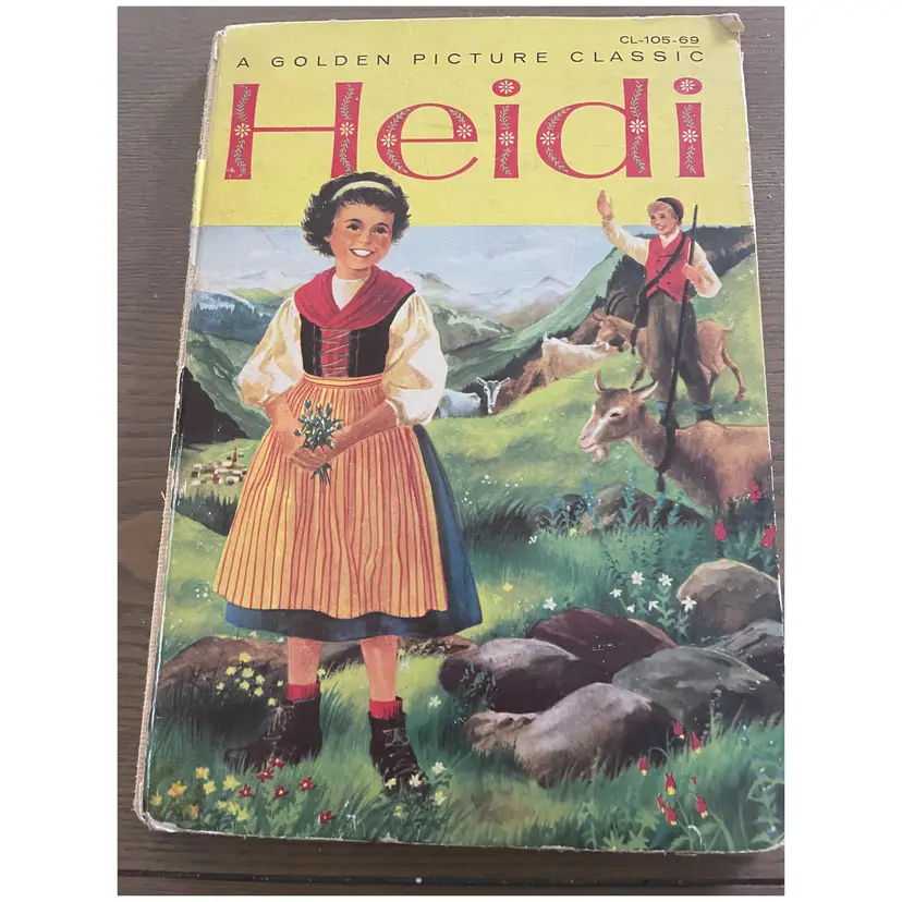 Vintage 1956 Book Heidi - A Golden Picture Classic Simon and Shuster Pages are discolored, binding in only fair condition. A collectors item.