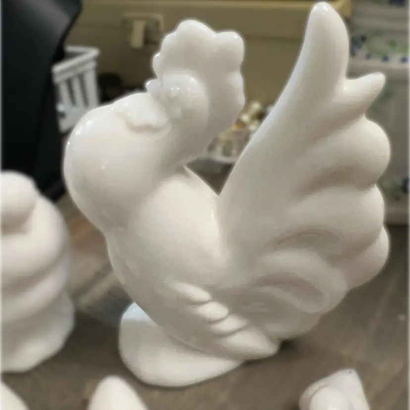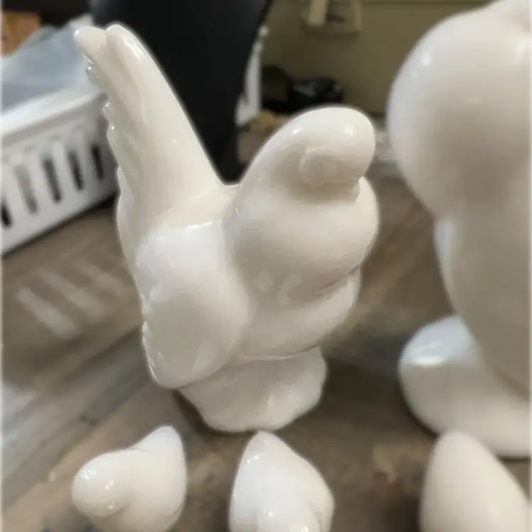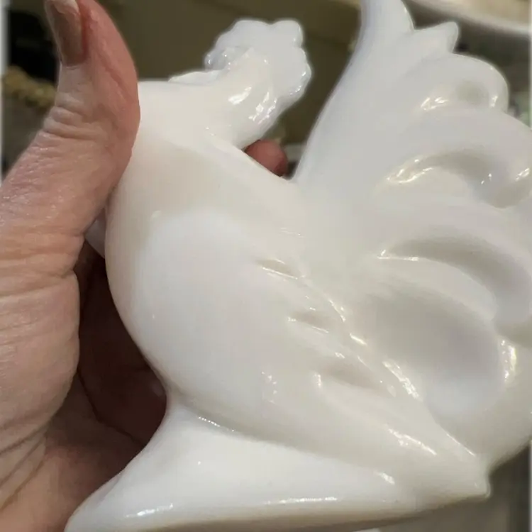 Vintage Heisey by Imperial Glass Milk Glass Rooster, Hen and Five Chick Figurines-Set of Seven, Marked IG… Excellent Condition! Cadmium Glow!!! 6” Rooster, 4.5” Hen.