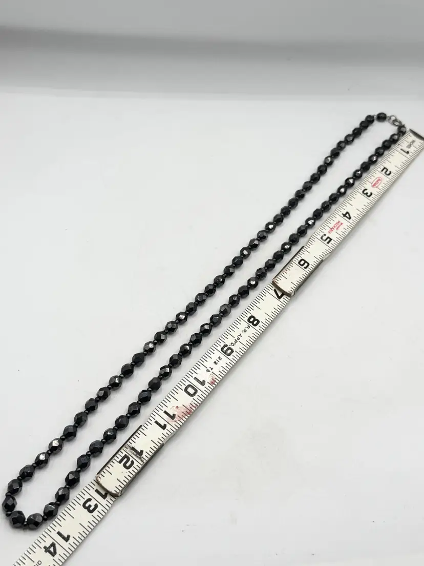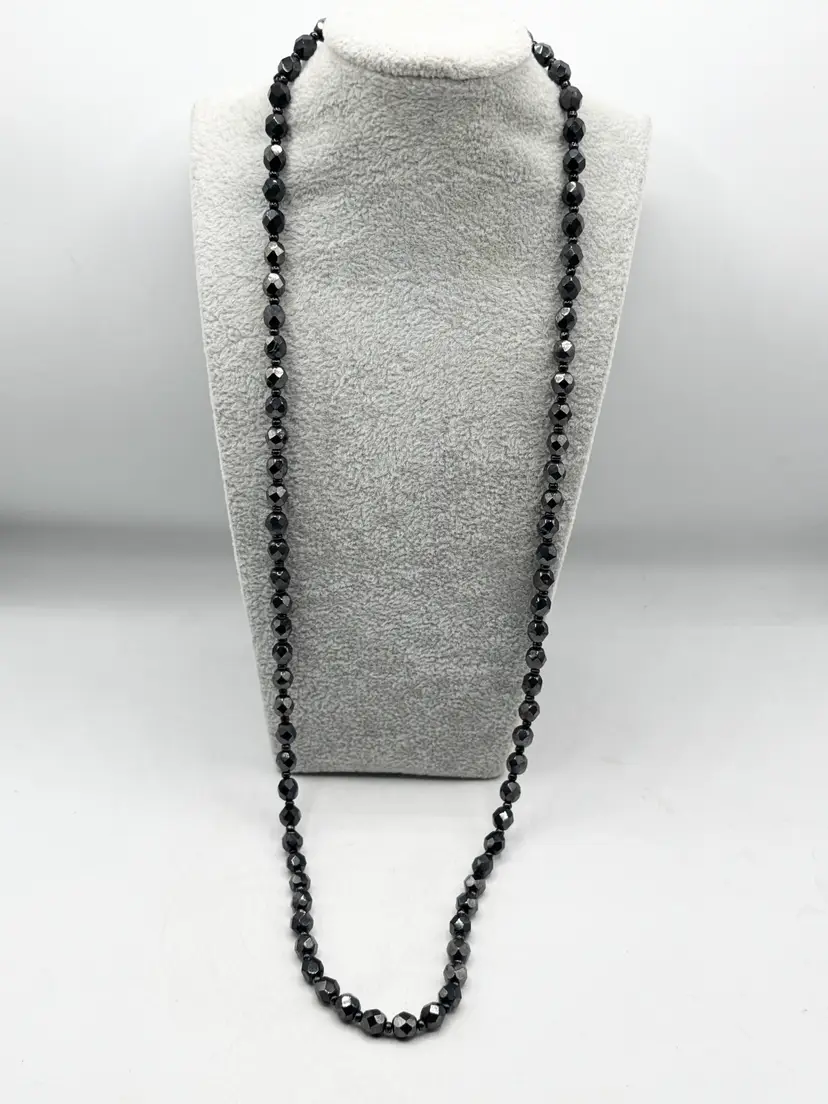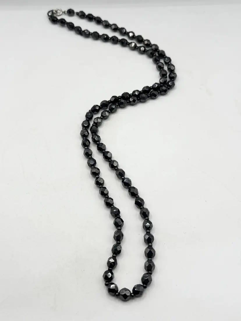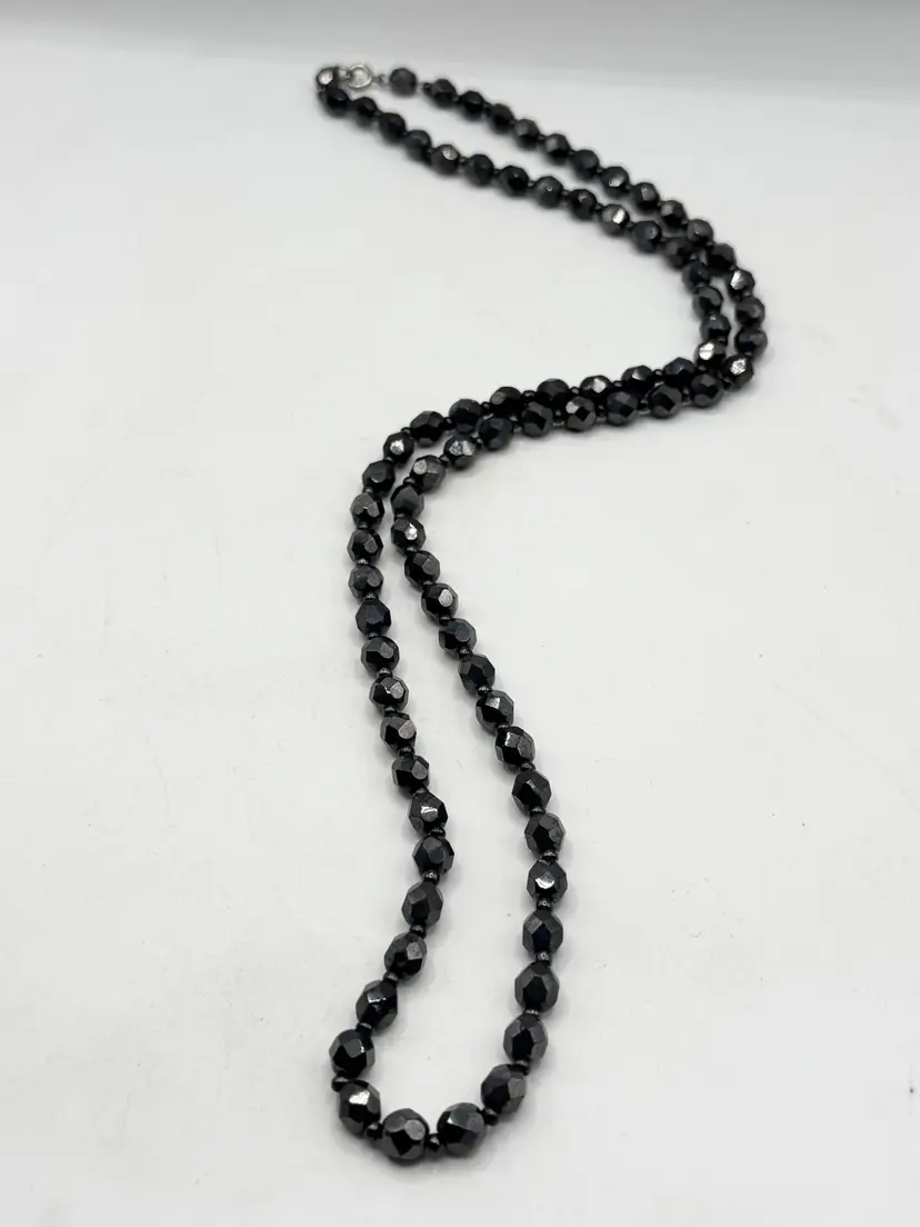 Vintage hematite bohemian glass beaded thin necklace. Bohemian hematite glass beads, thin. Vintage beaded necklace. MN56HJ.