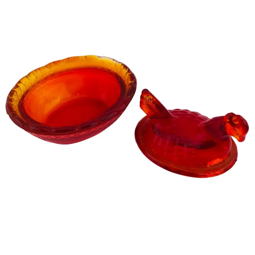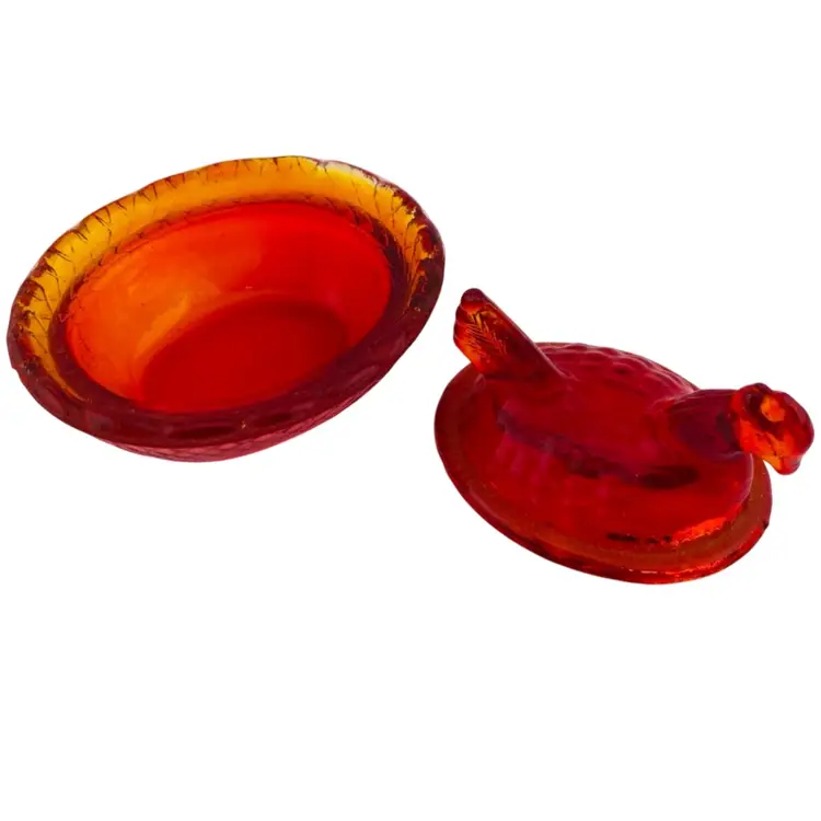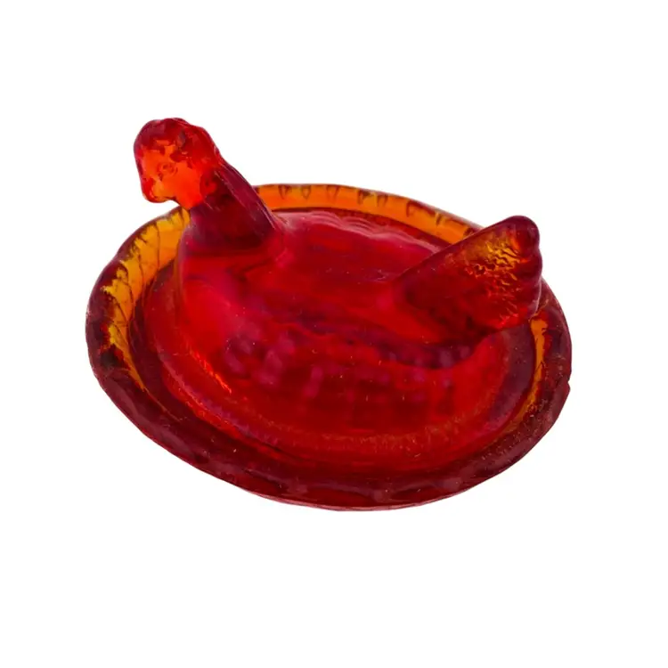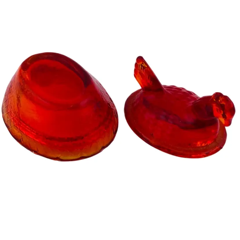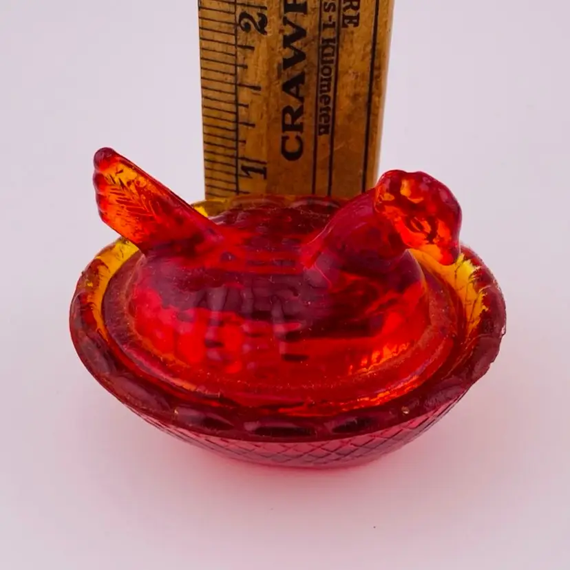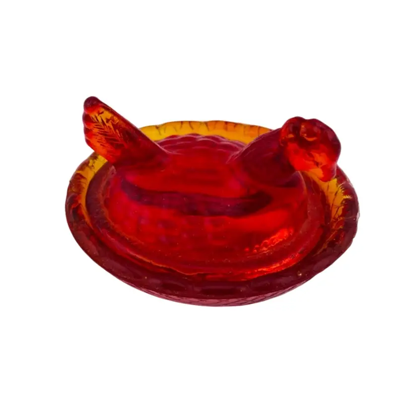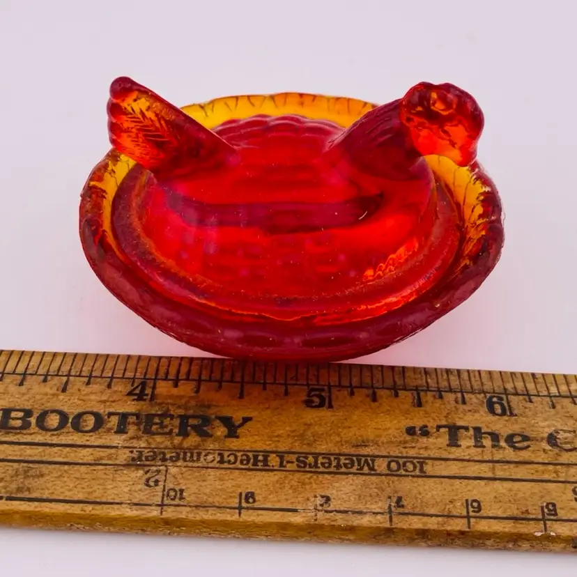 Vintage Hen On Nest Salt Cellar Miniature Amberina Glows 1.5”