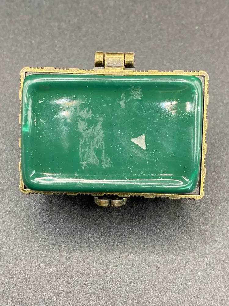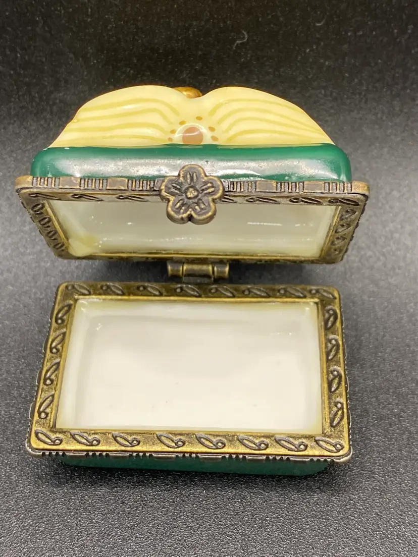 Vintage Herco, hand painted porcelain trinket box. This is a book with glasses. The hinge is intact and the latch works. This stands approximately one and half inches tall. There are no chips or cracks.