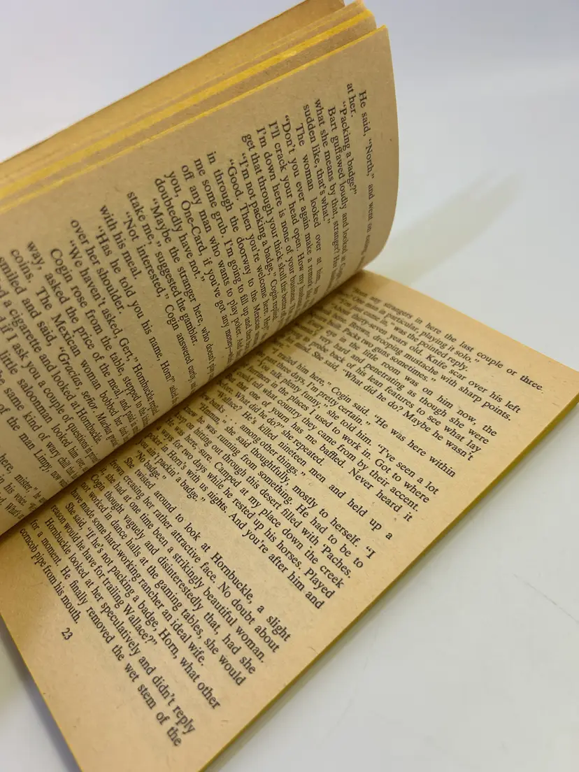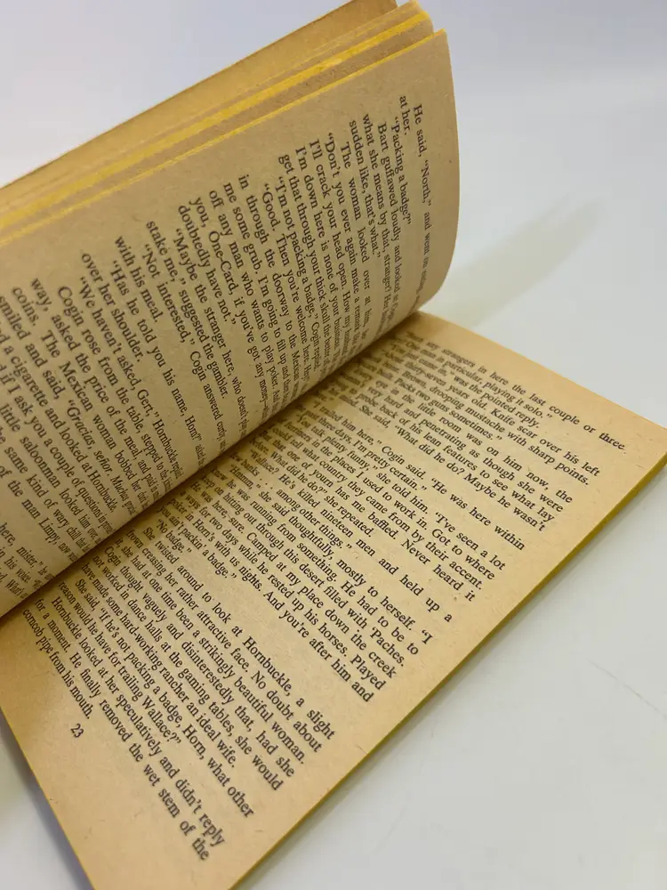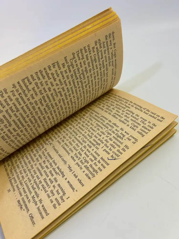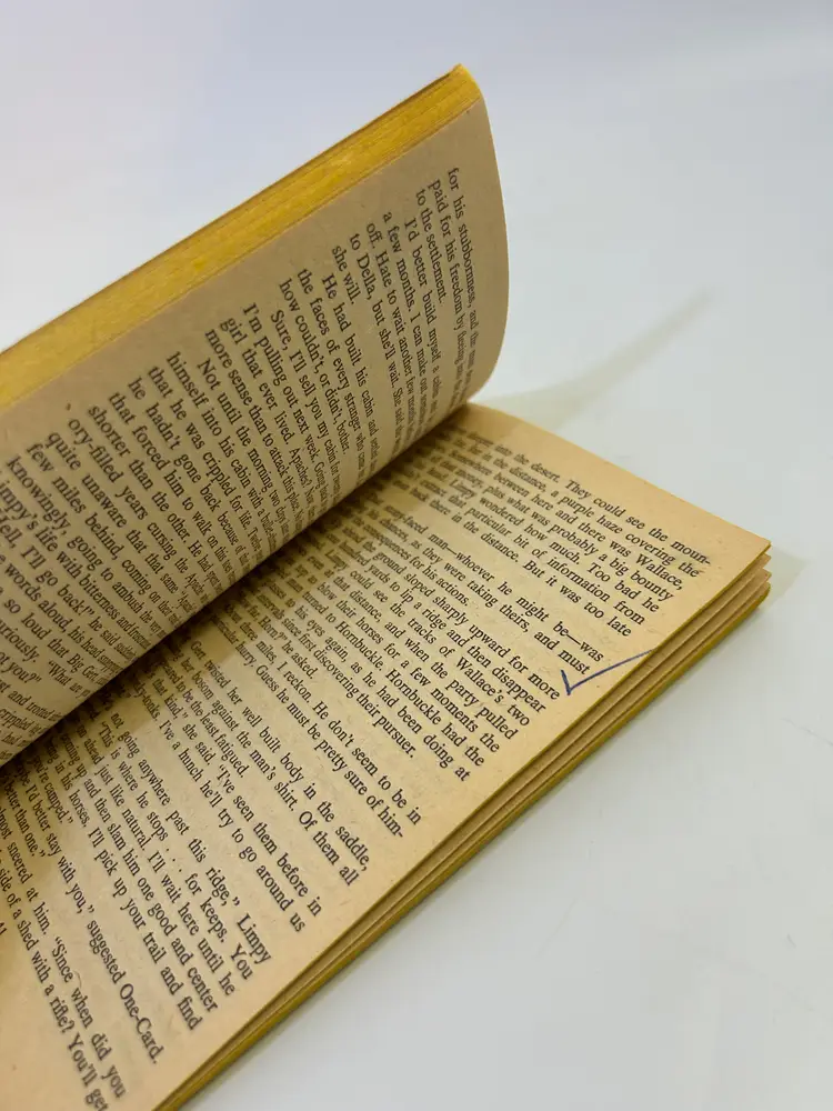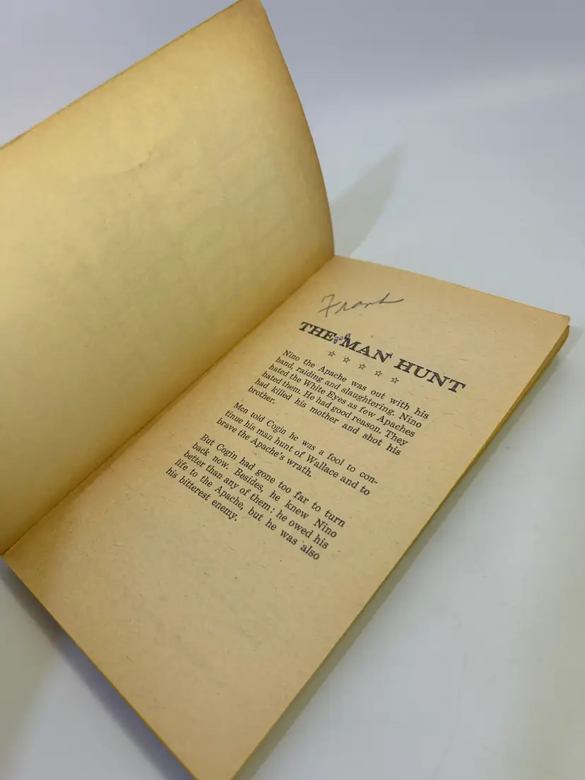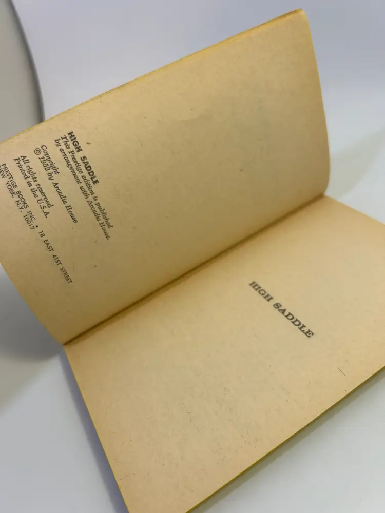 Cover has wear on edges and corners on cover, also creases by spine on both sides, also has common yellowing and discoloration throughout. On back cover toward right top layer of cover has a ripped up spot - see 2nd photo. Common wear and yellowing on pages and edges of cover. Has some pen writing on first page and check marks on pages 35 and 41 - see photos. Please look over and enlarge photos for overall condition.