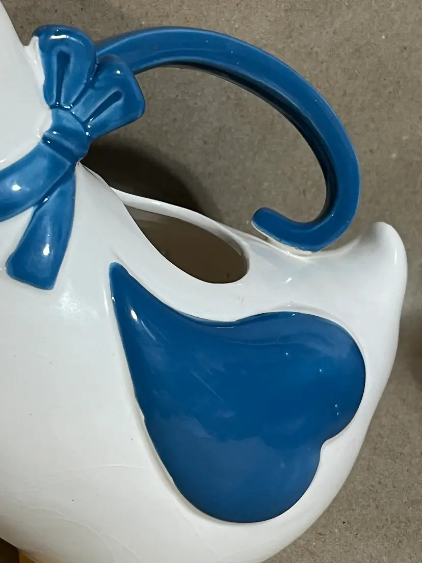 Vintage HiMark Goose With Blue Bow Tea Pot Pitcher Farmhouse Cottage core