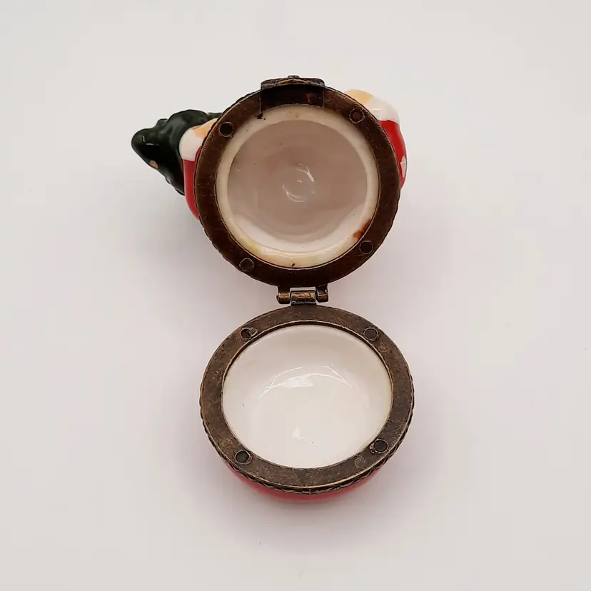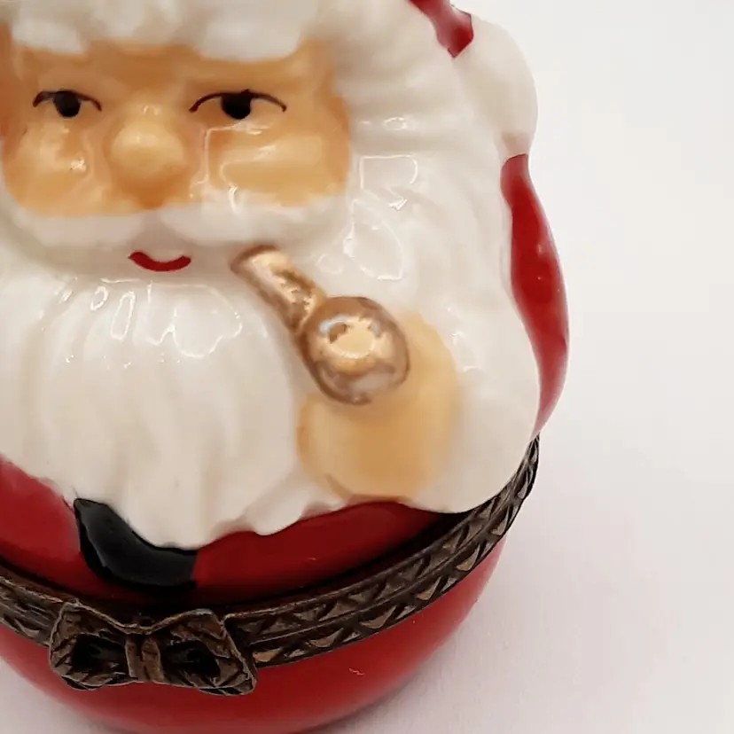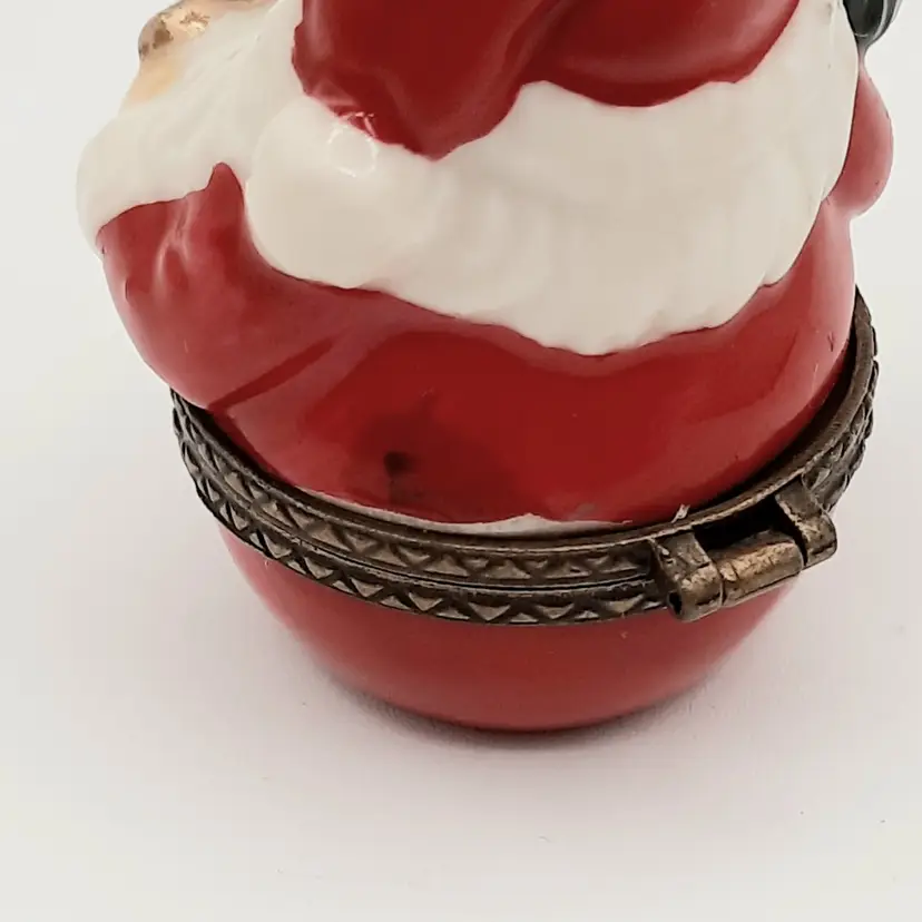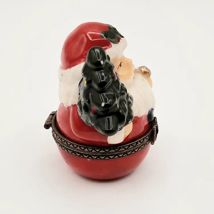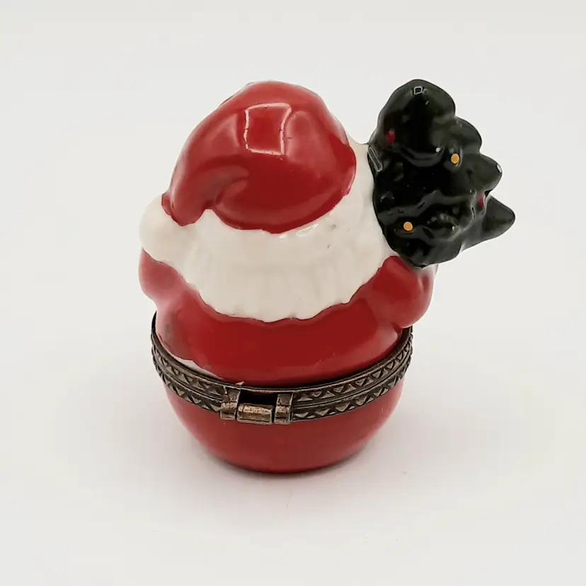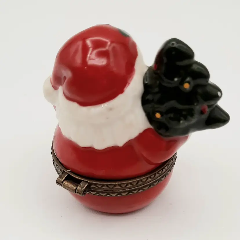 Vintage Hinged Christmas Santa with Tree Trinket Box