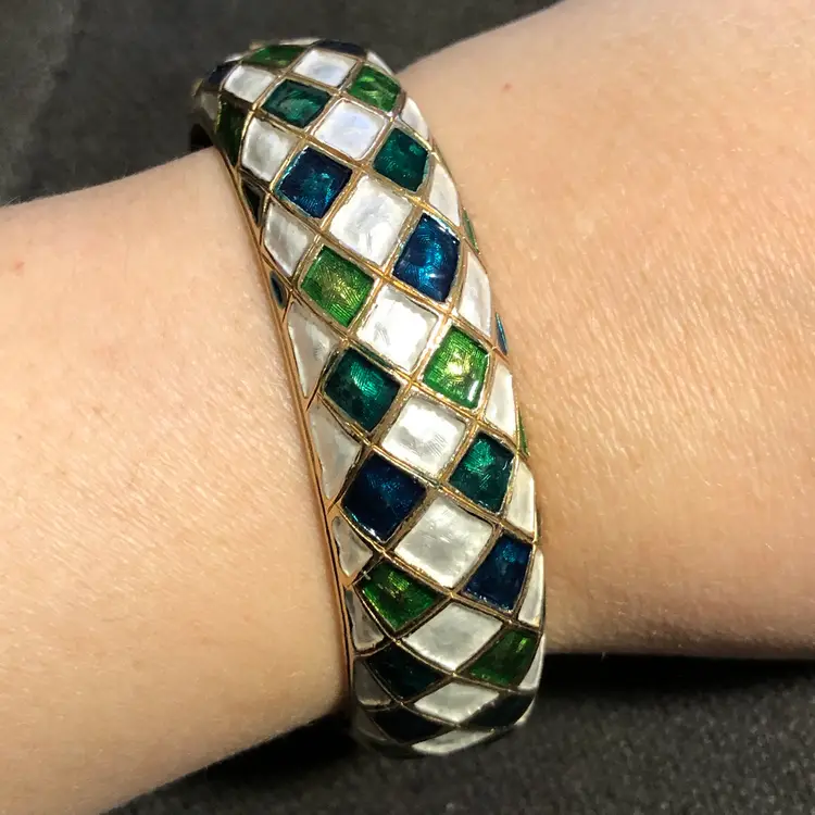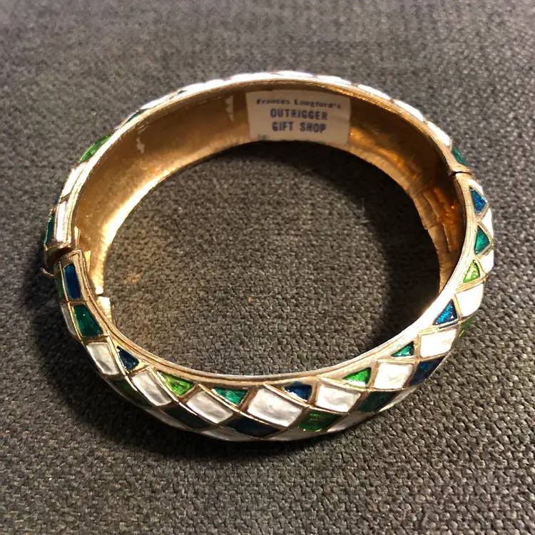 Vintage Hinged Harlequin Frances Langford’s Gold-Tone Bangle Bracelet