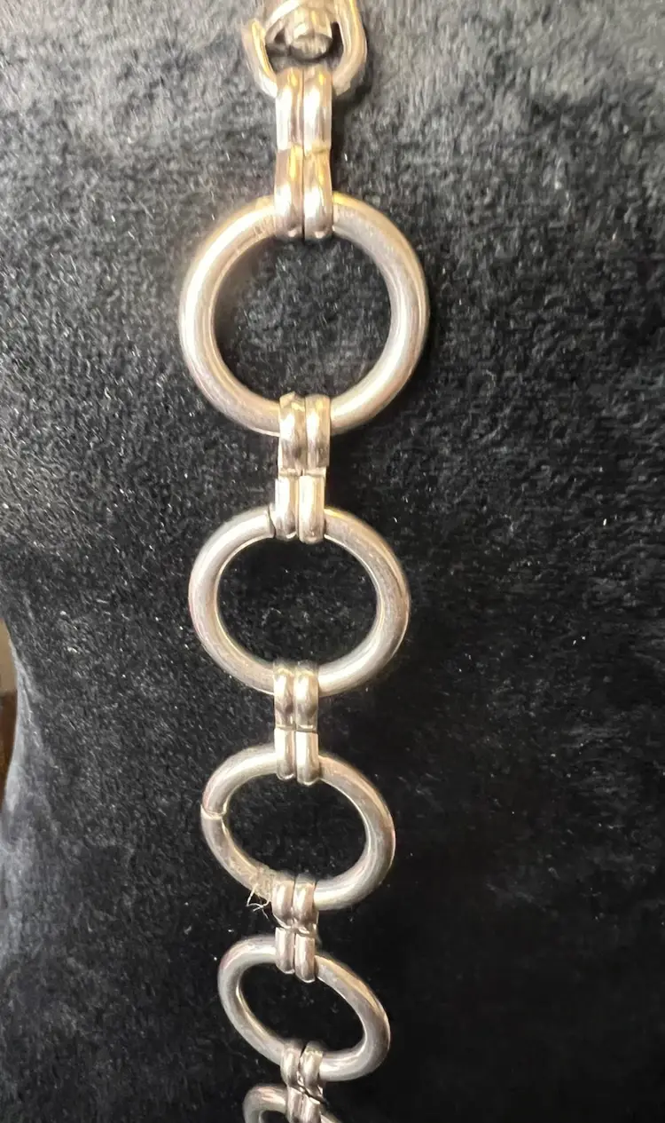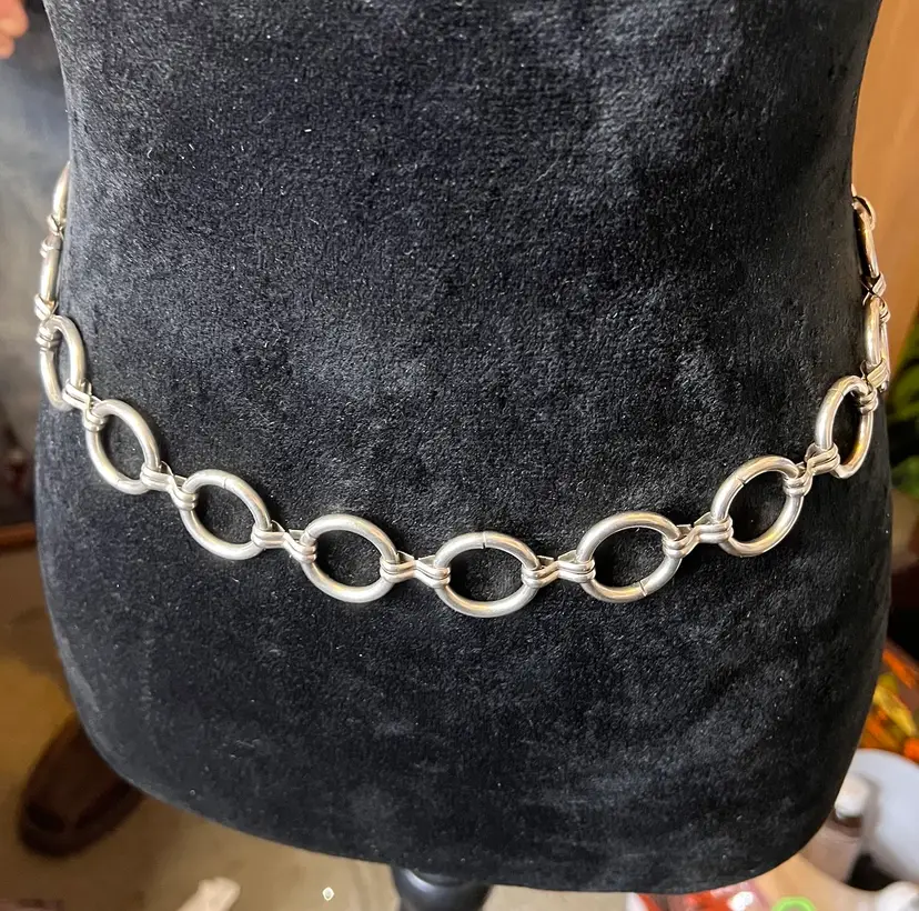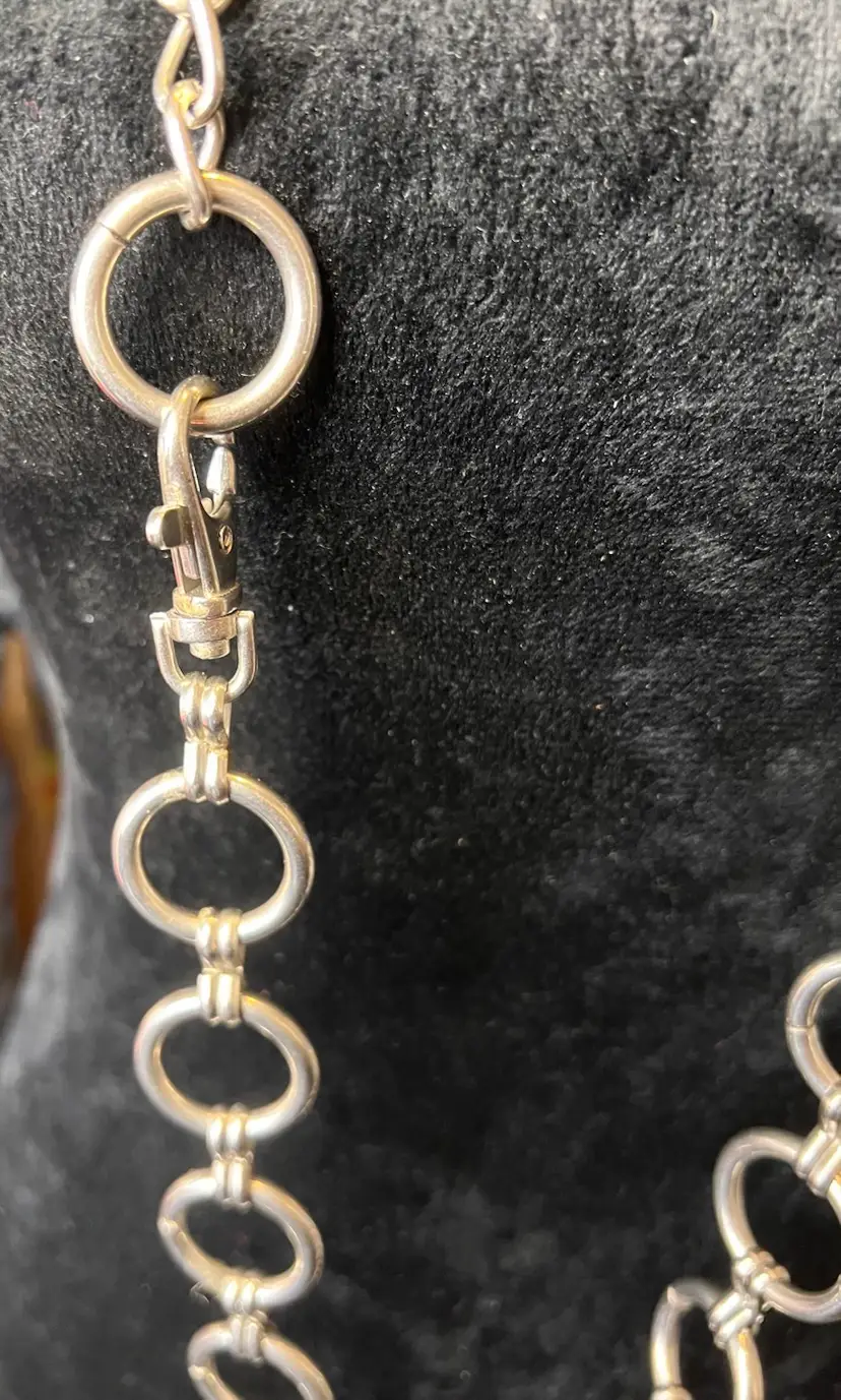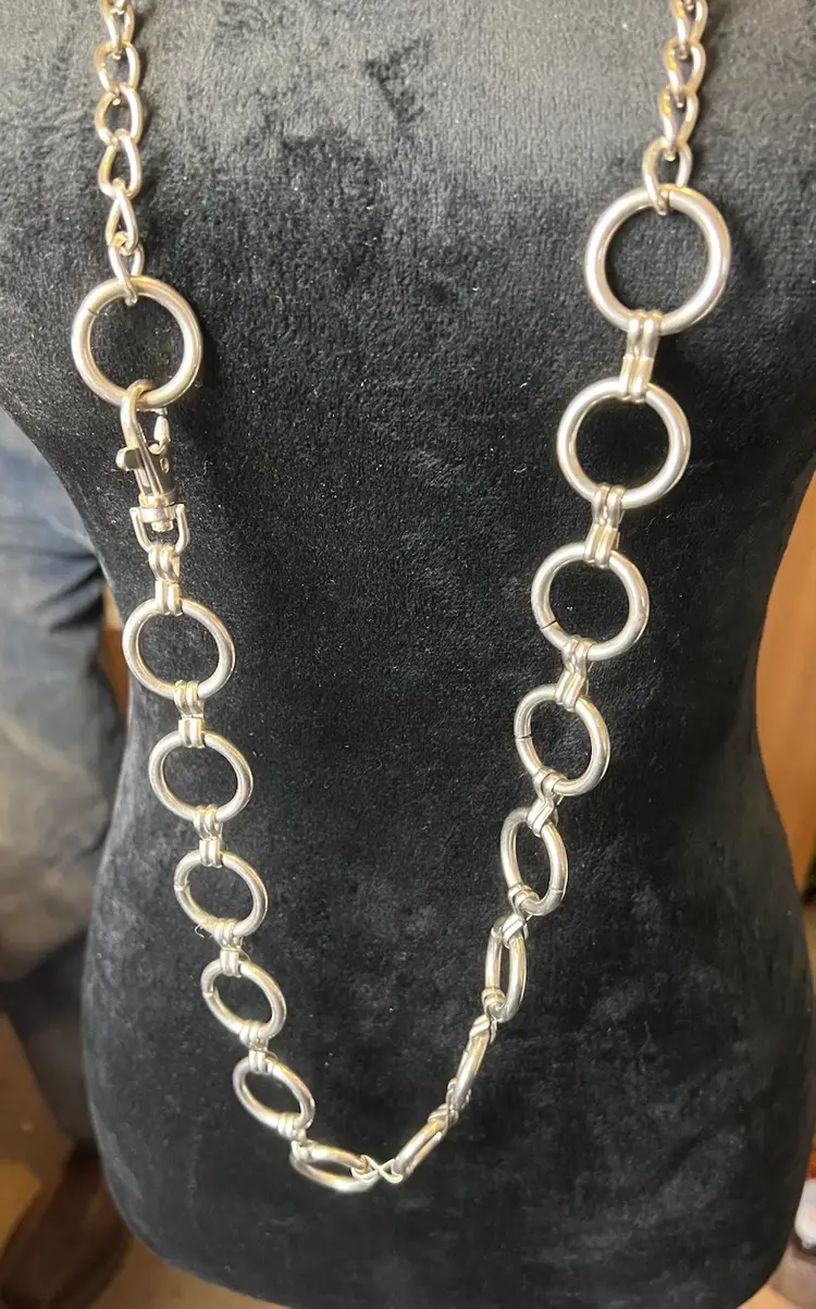 Very nice, heavy circle link chain belt or necklace. 48”. Swivel clasp.