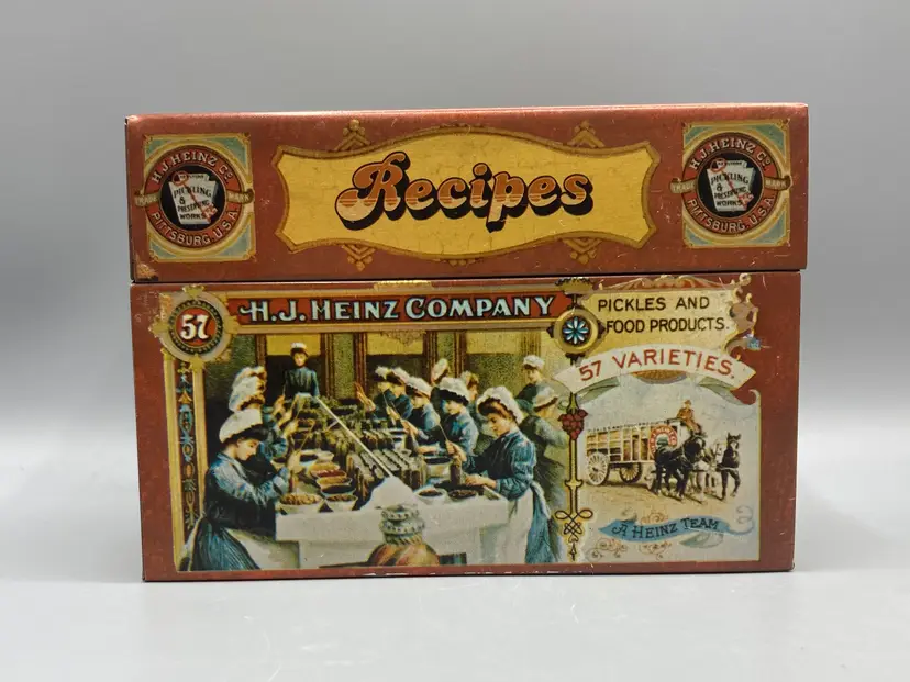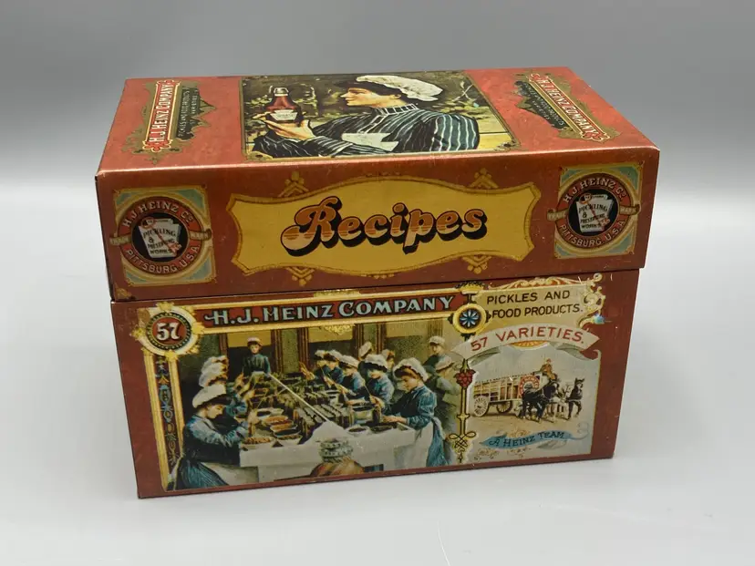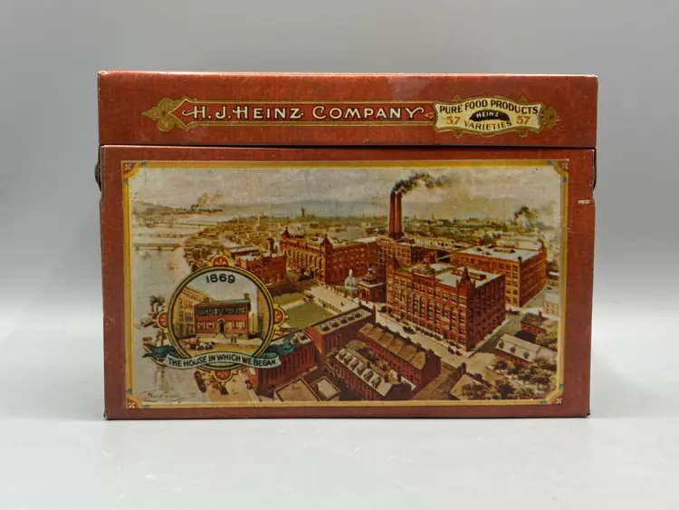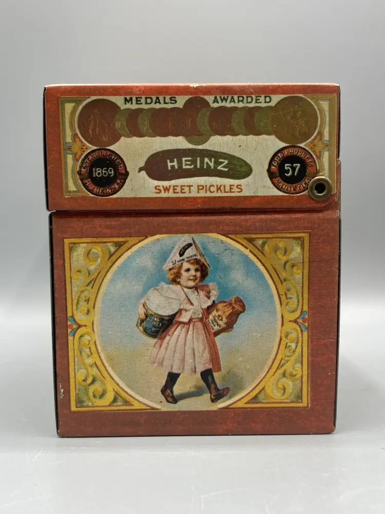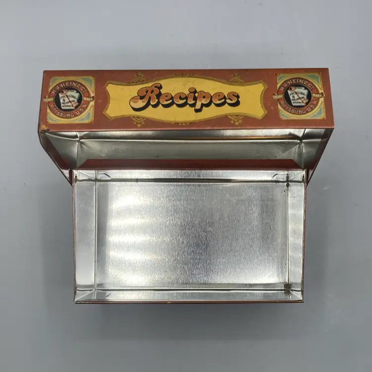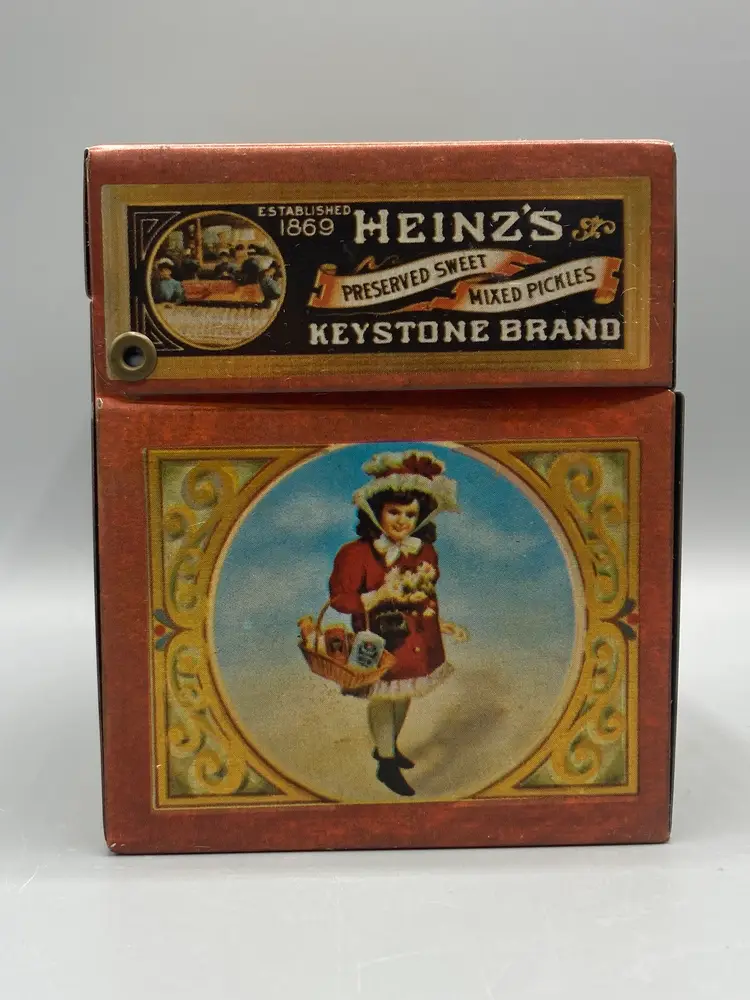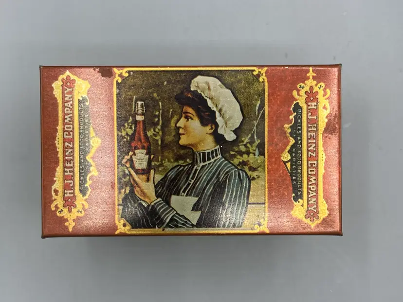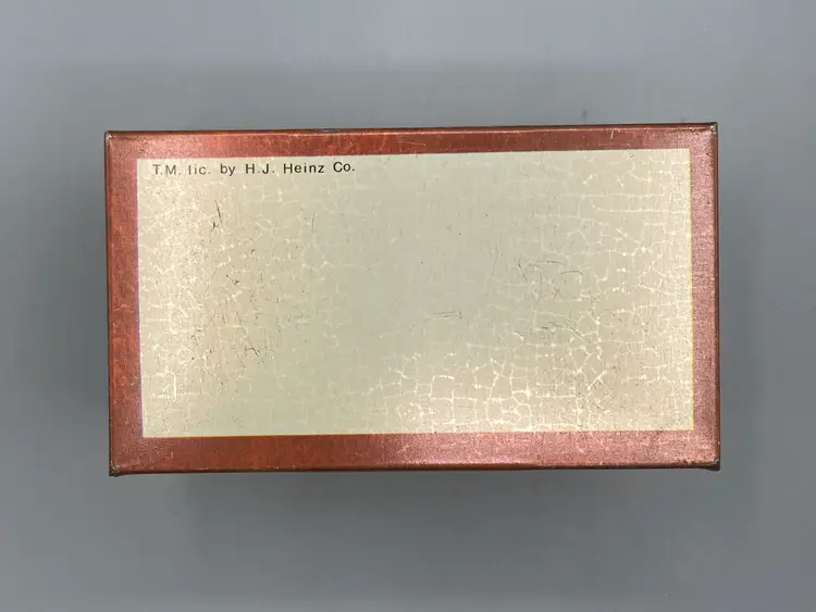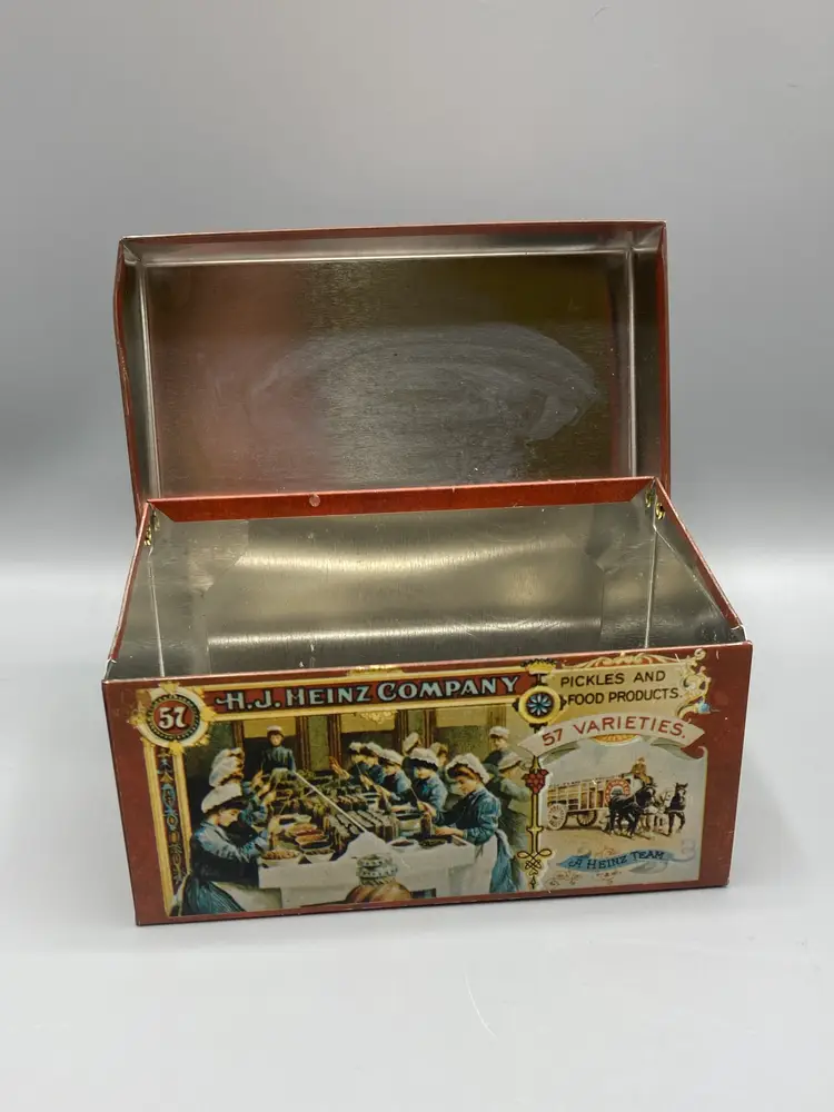 This tin is in good condition. It measures approximately 3 5/8" tall x 5 1/4" x 3".