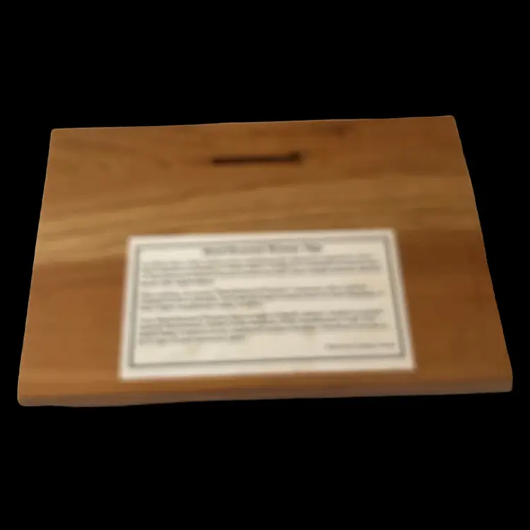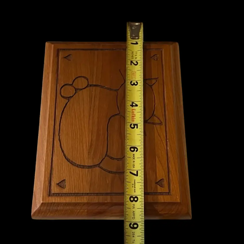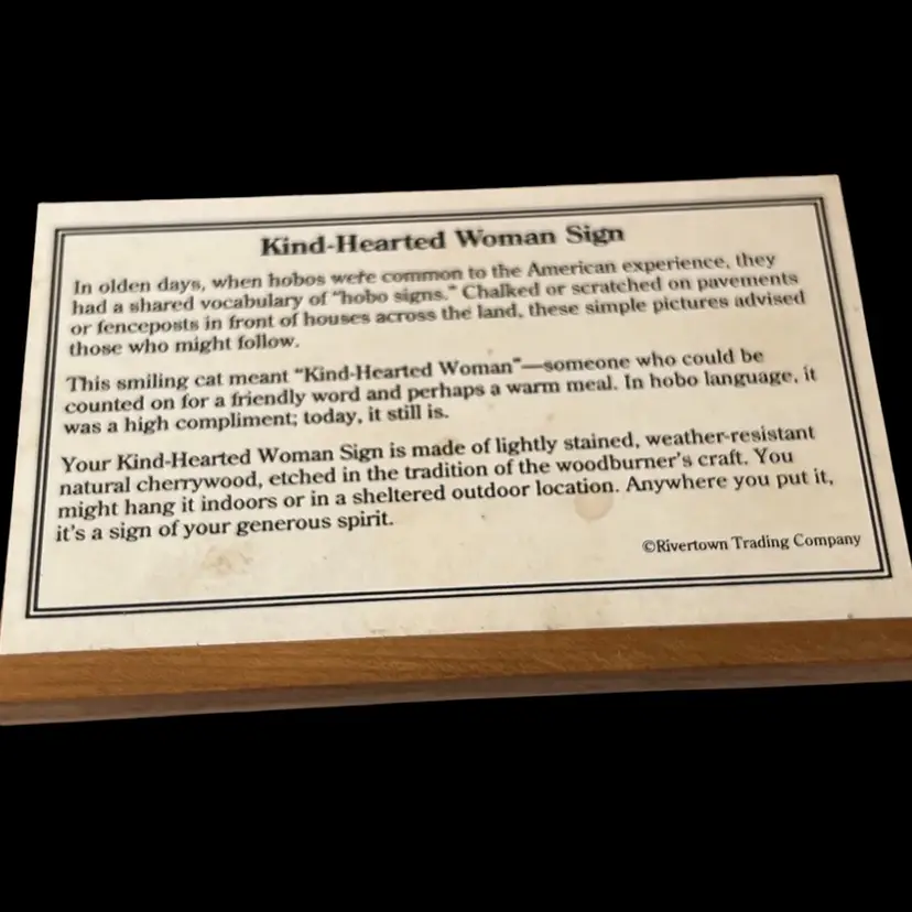 This is a folk art sign depicting one of the signs a hobo may have came across during his travels. The plaque is in excellent condition. There is some staining on the story attached to the back of plaque.