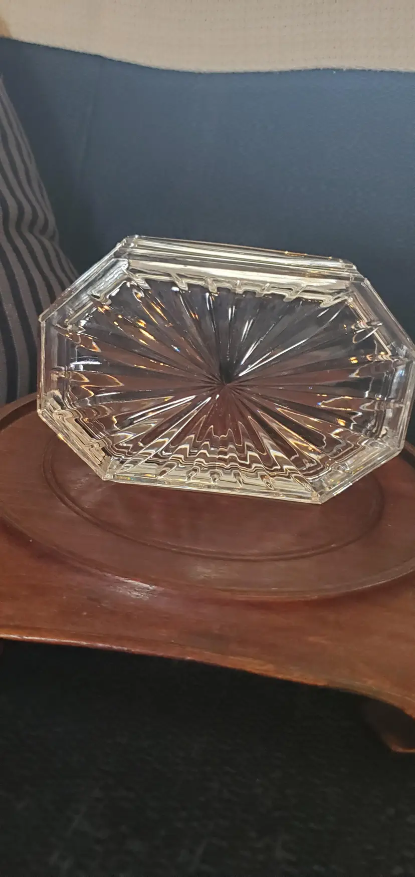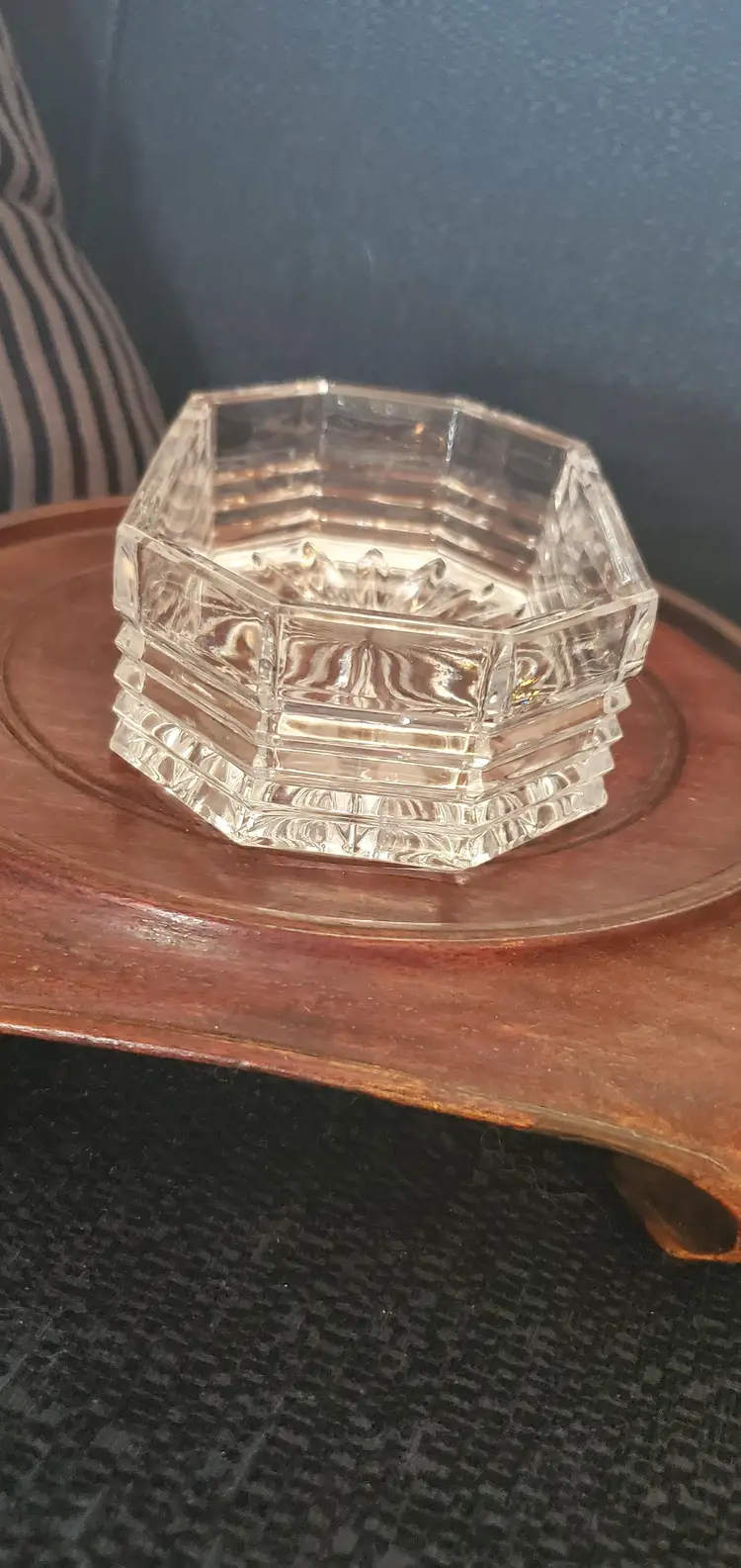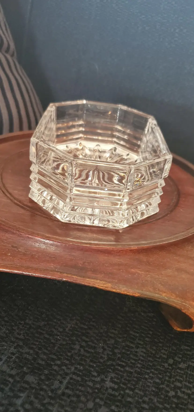 Beautiful 24% lead crystal trinket box made in Germany. Has a frosted bird on lid. Would look beautiful on a dresser or vanity.