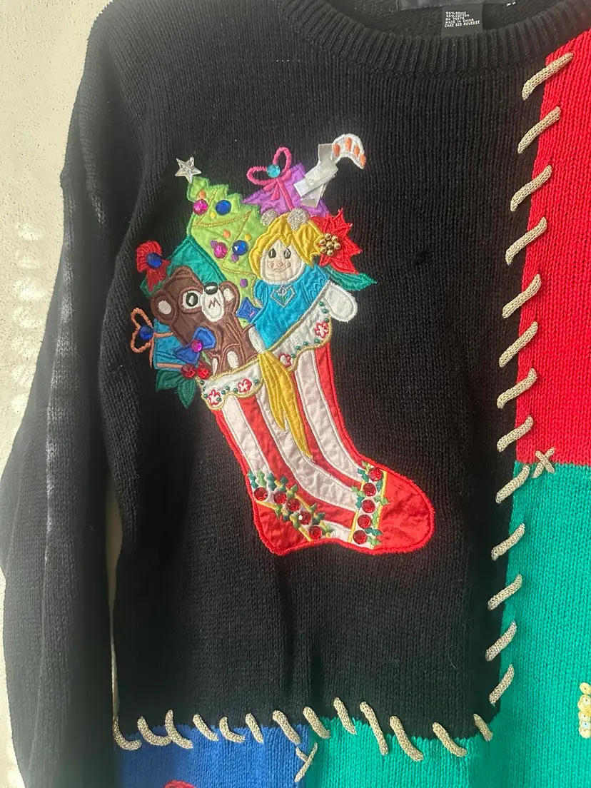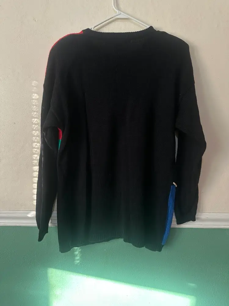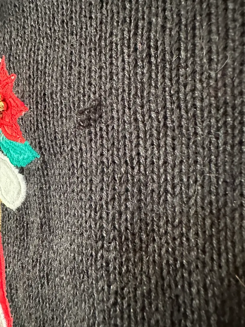 Approximate flat lay measurements: 23” pit to pit 30” long Has shoulder pads One pulled thread