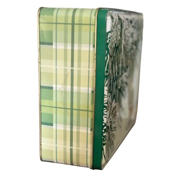 Off white and dark green Pine boughs and pine cones with Season’s Greeting” Approximately 10 x 7.5 x 3