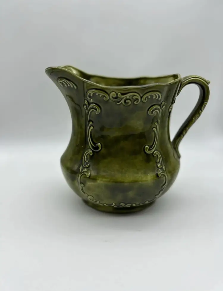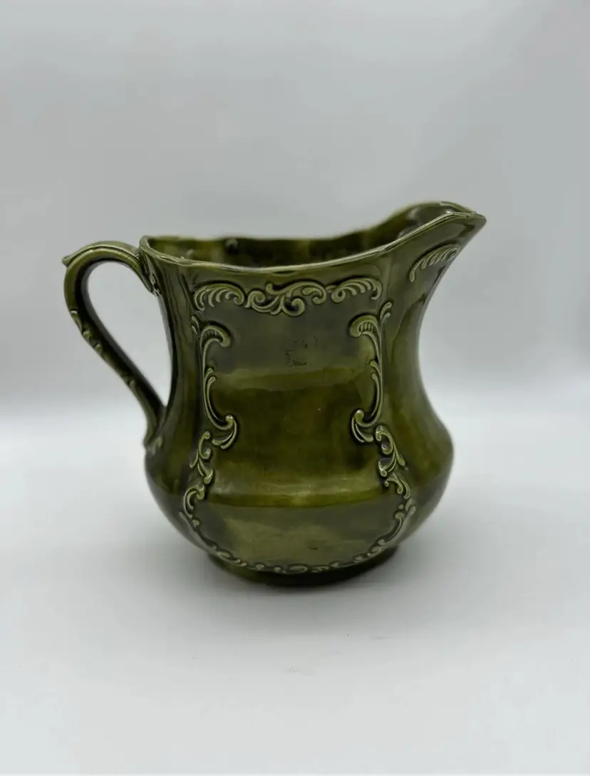 Vintage Holland Mold 1970’s Avocado Green Ceramic Water Pitcher 7 1/2”