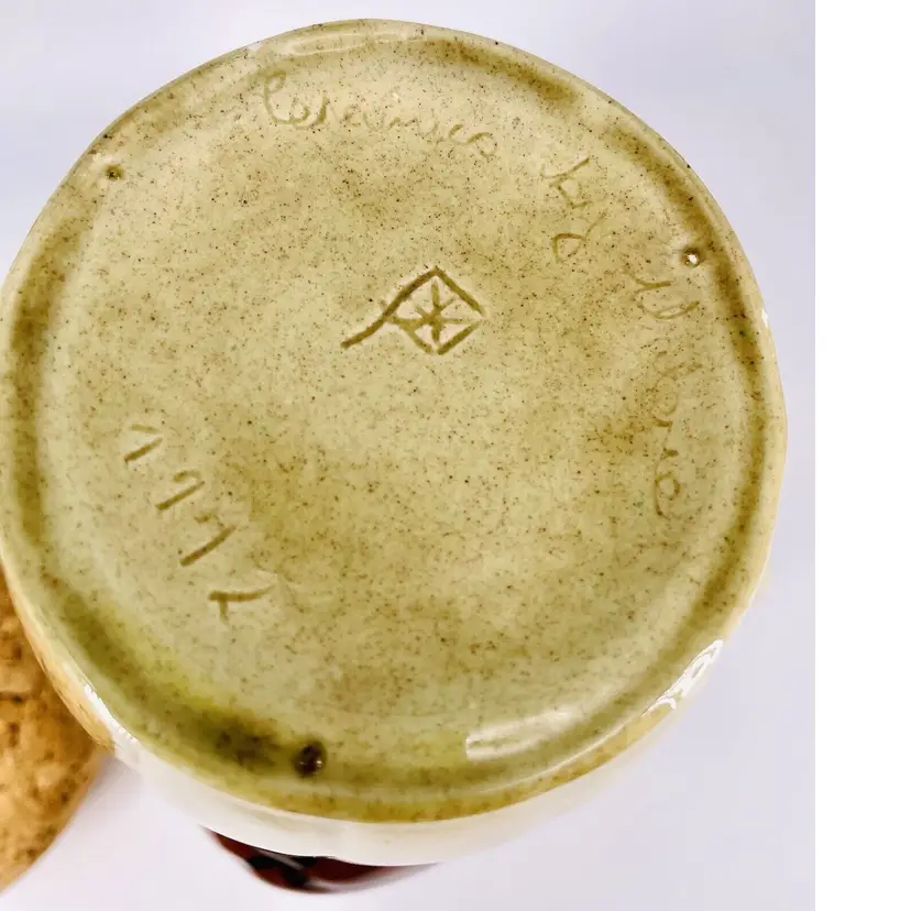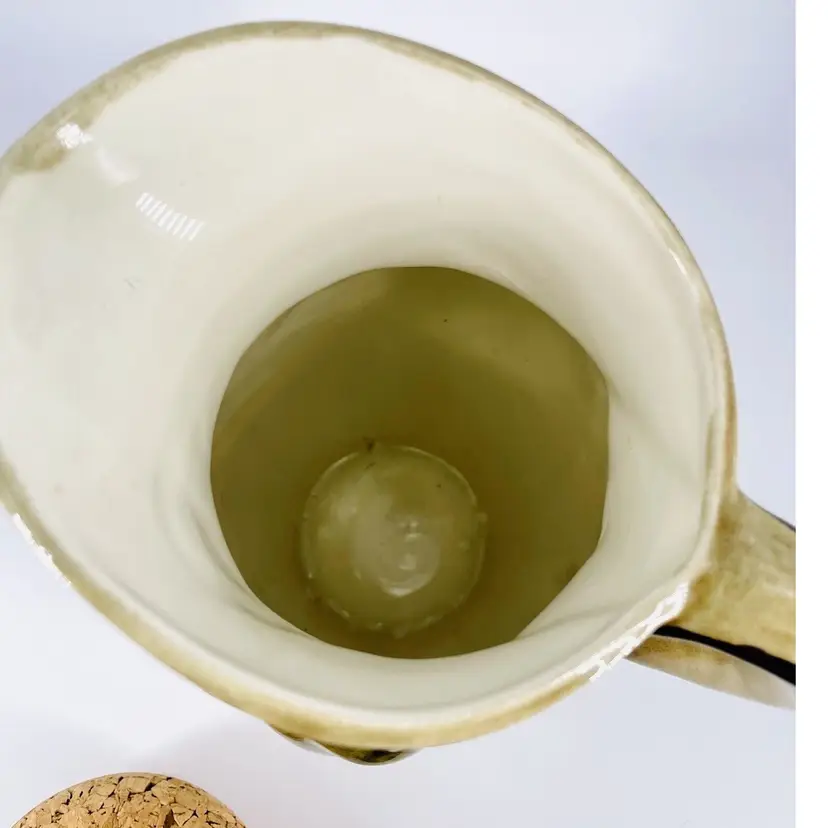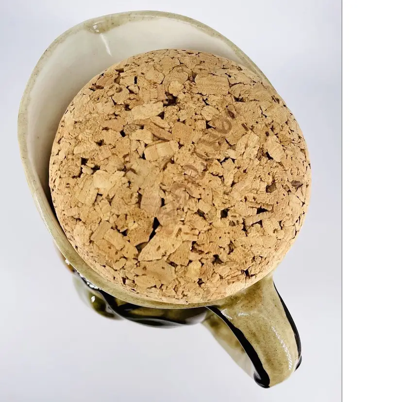 This item is in excellent condition. No chips or cracks. Cork is in excellent condition. See images for details. Measures 9" tall by 6 1/2" wide (including handle) Weighs 1lb 8oz