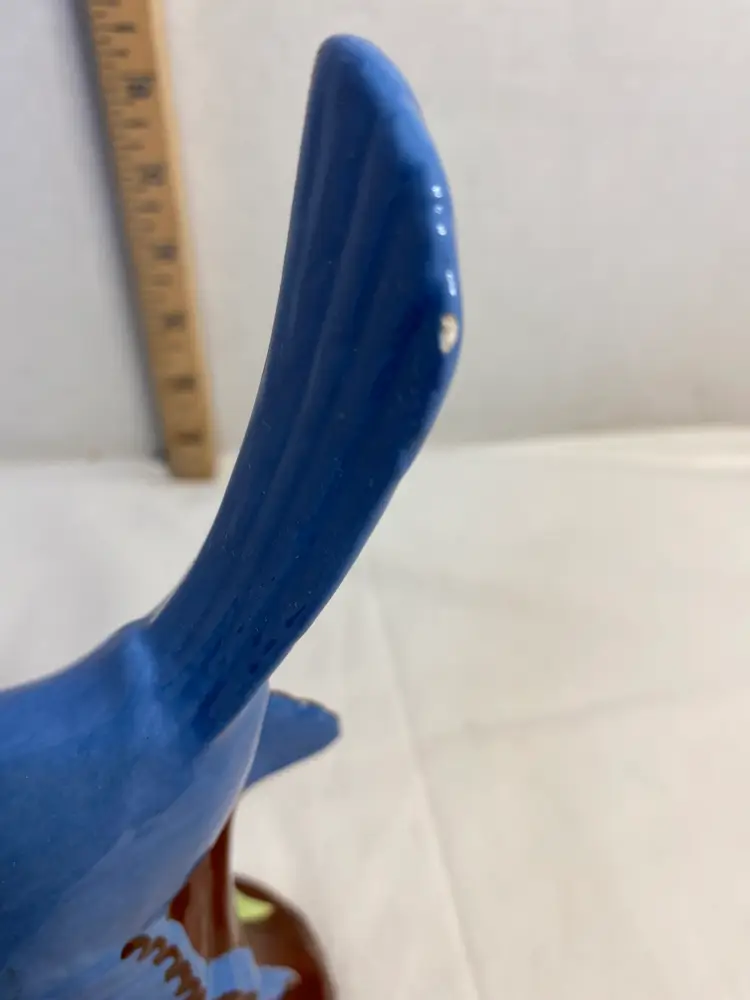 1977 ceramic bird, has small nick in tail shown in pictures. No other chips or cracks. Glazing in great shape. Hobbyist piece, 8” tall