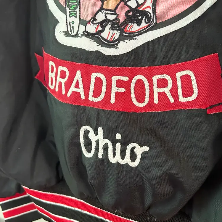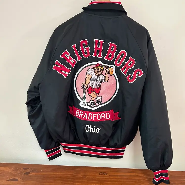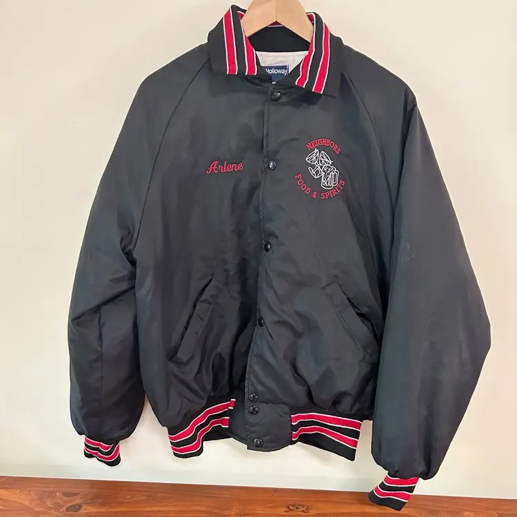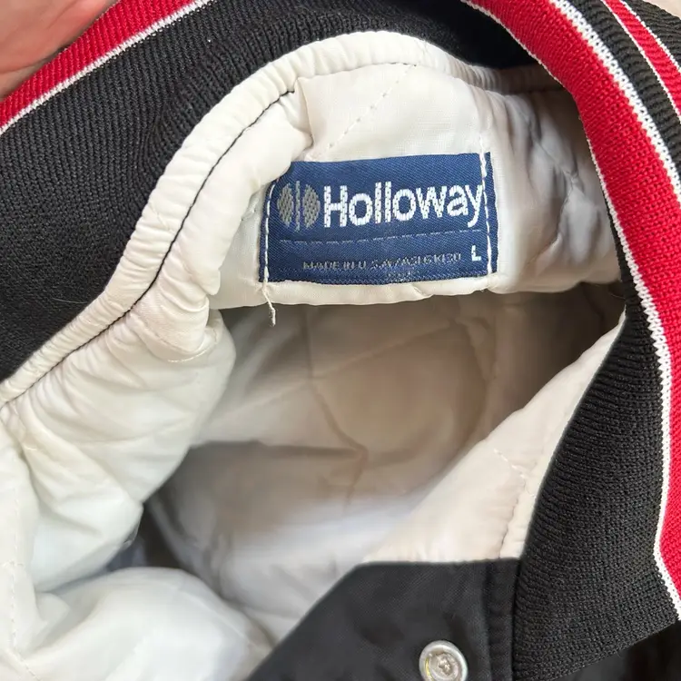 Vintage Holloway size large local bar jacket. Good condition. See measurements below to ensure fit. Measurements taken in inches while the jacket was laying flat.