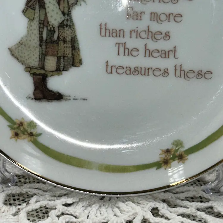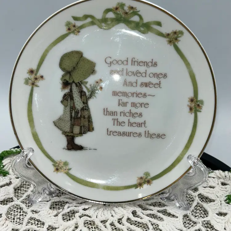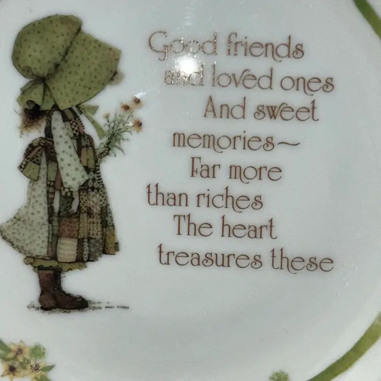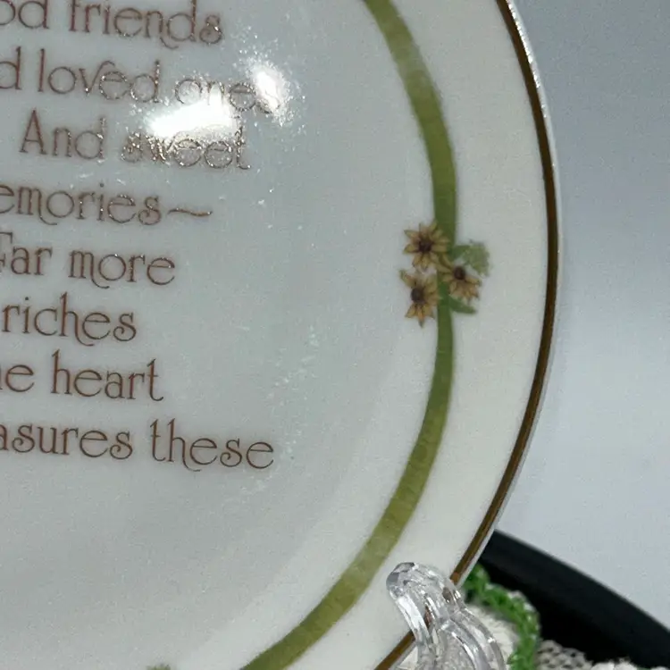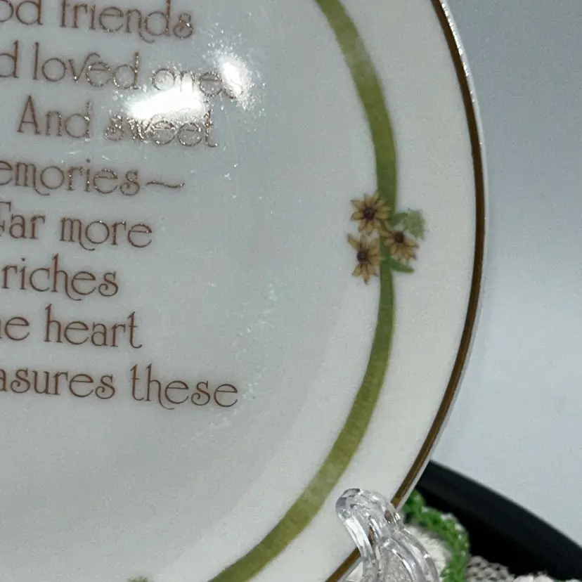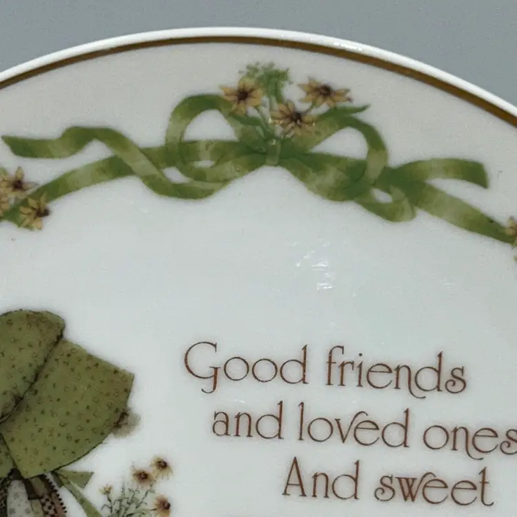 “Good Friends and Loved Ones”. Made in Japan. 6 1/8”diameter. Excellent condition. Reads: “Good friends and loved ones And sweet memories~ Far more than riches The heart treasures these”