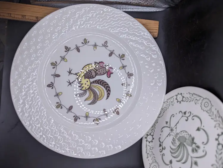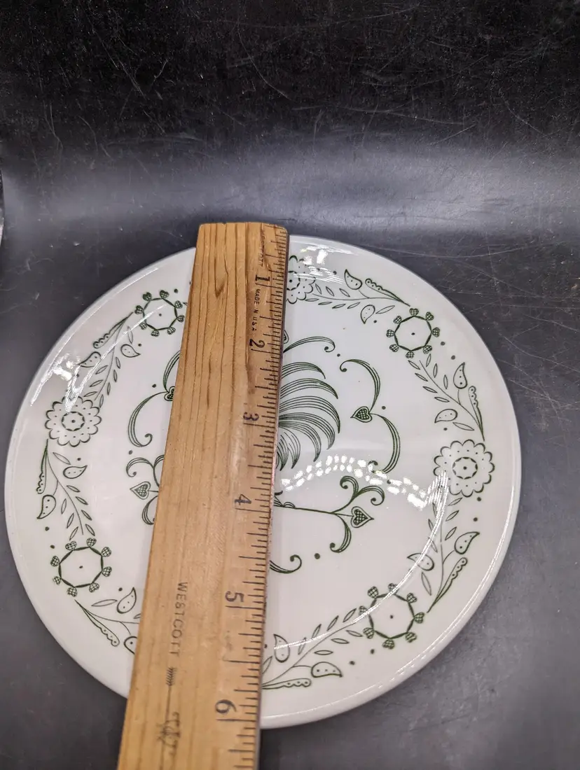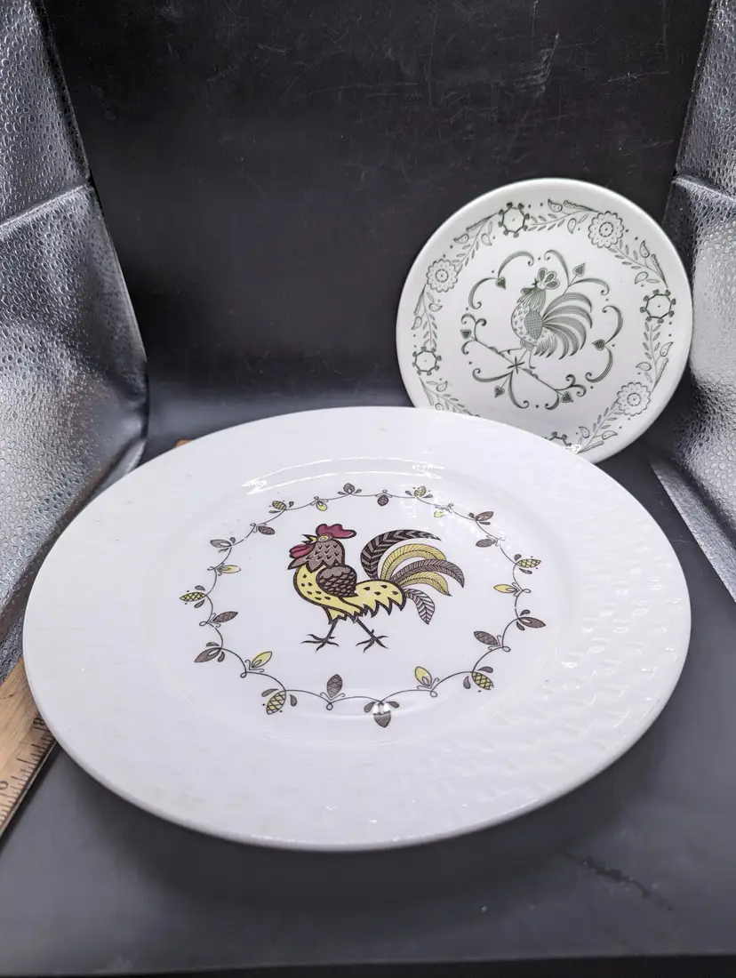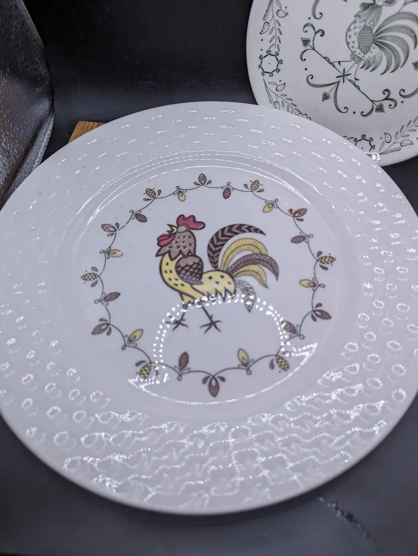 Add a touch of farmhouse charm to your dining table with this vintage rooster-themed dinner plate set. Perfect for collectors or everyday use. Please see all photos for details and condition.