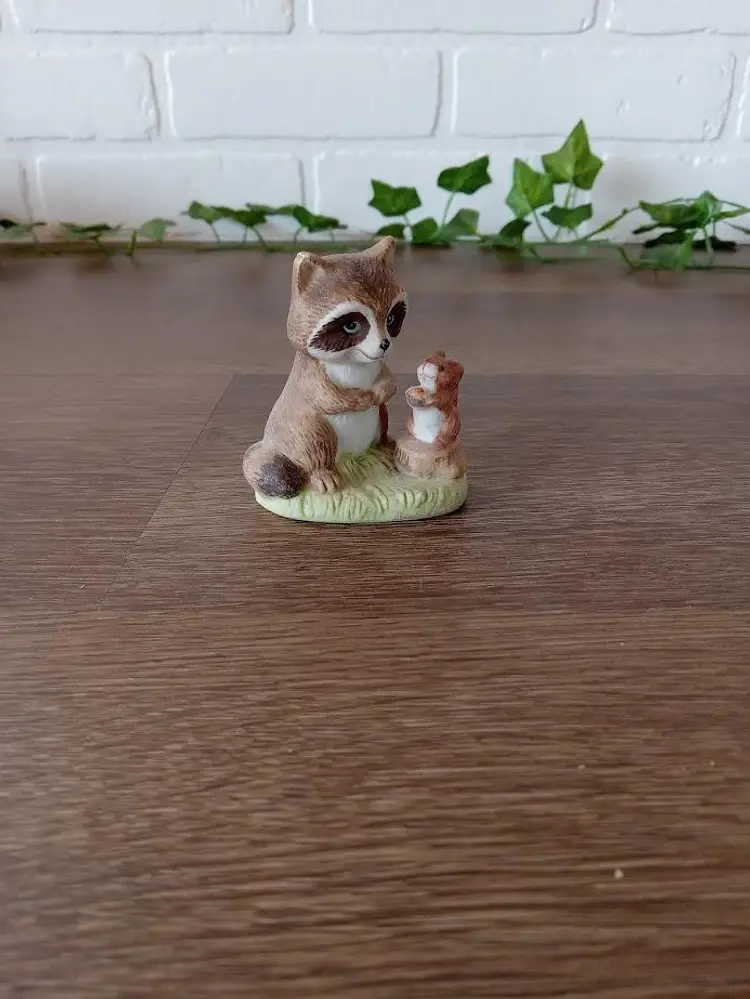 Vintage HOMCO 1418 Racoon with Squirrel Figurine 2.5" 2476
