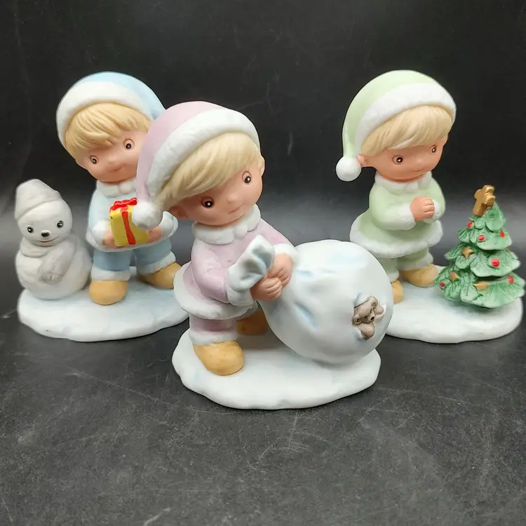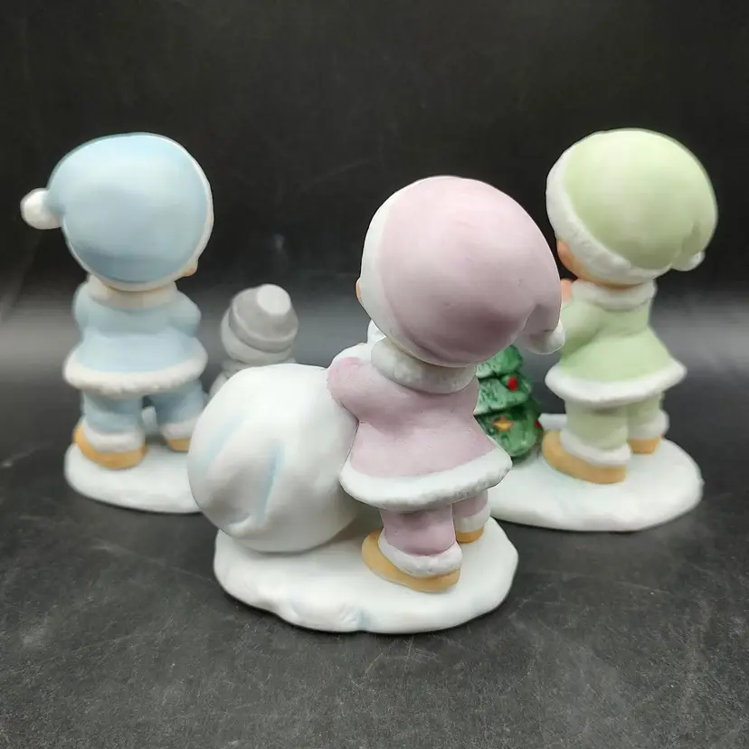Vintage Homco ceramic Christmas children figurines in good condition no chips or cracks height 4" x width 2" x length 3" Made in Taiwan