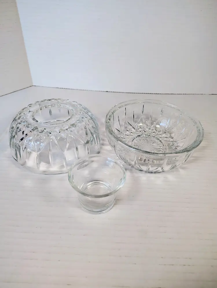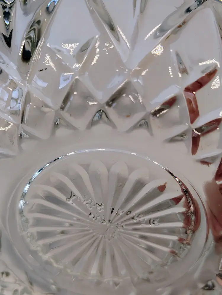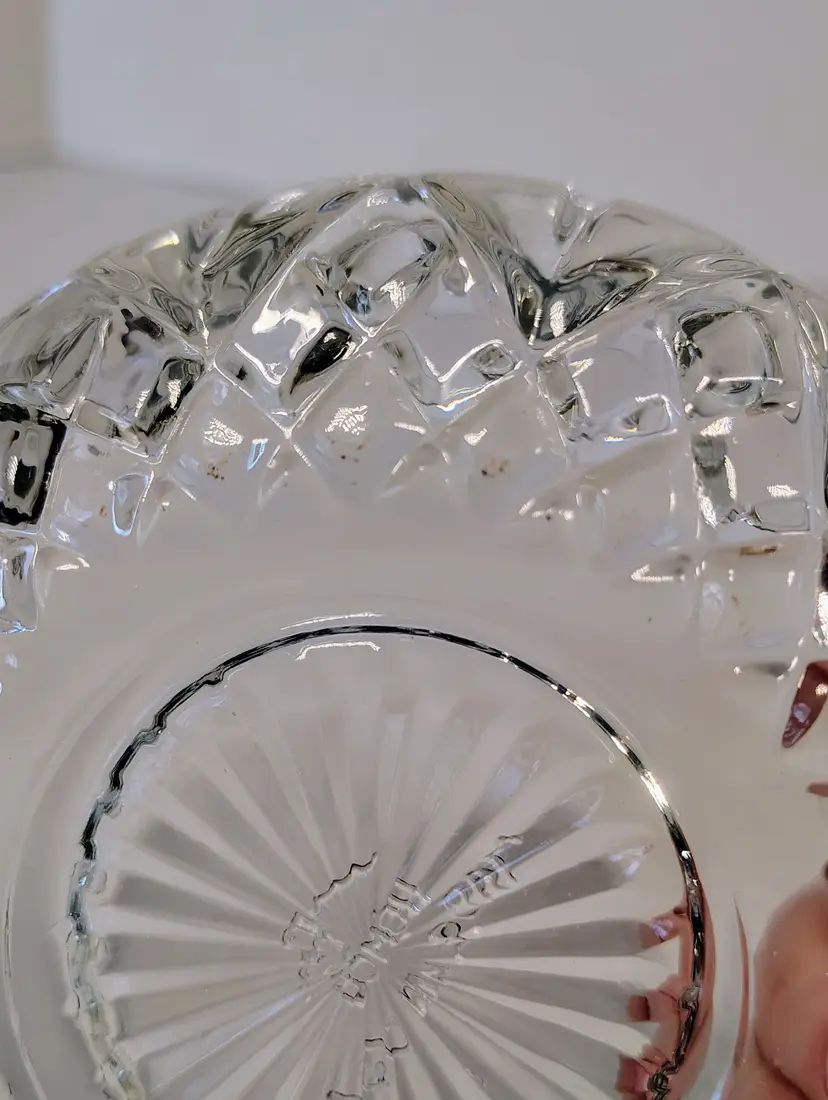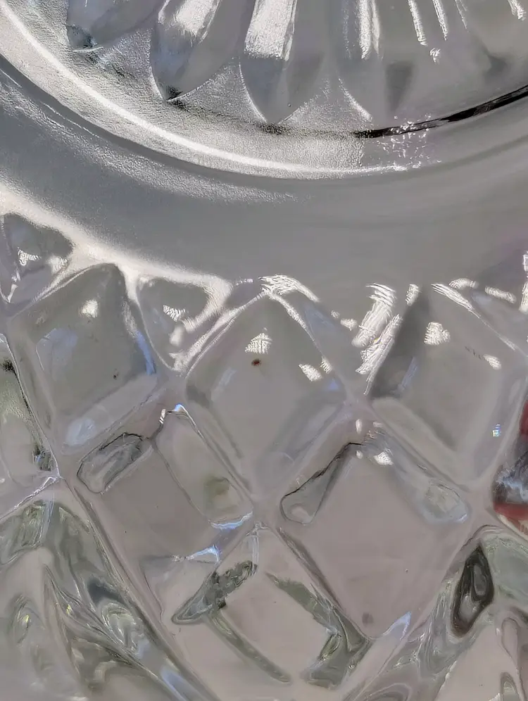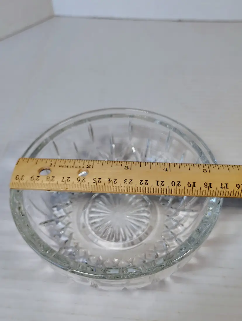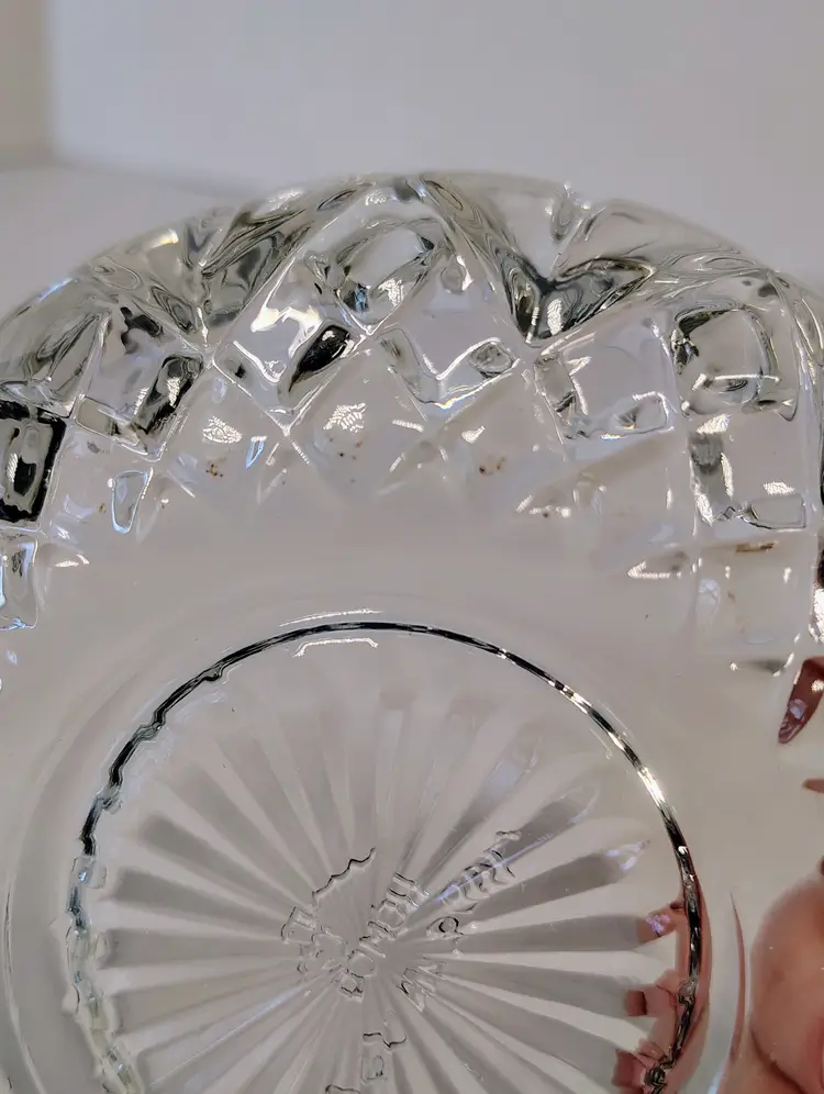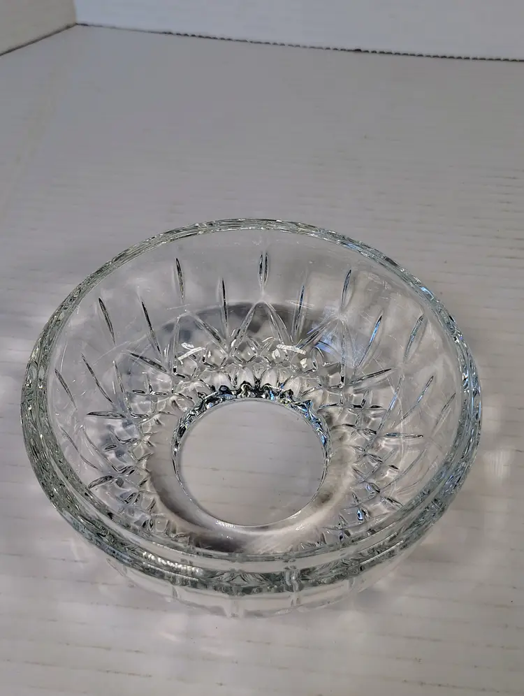 This is a Homco clear glass fairy lamp. It's three pieces, top, bottom, and tea light / votive holder. Made in USA. There are a few small dark marks in the glass, I've shown them in the pictures. No chips or cracks. It's approximately 4.75 inches tall and about 5.25 inches wide. Thanks for looking. Please see pictures for details.