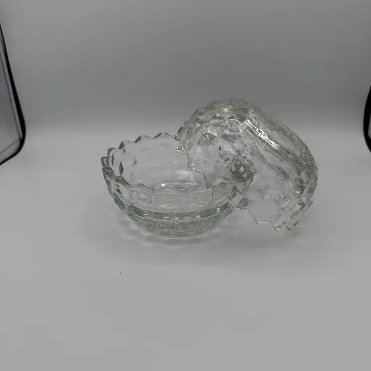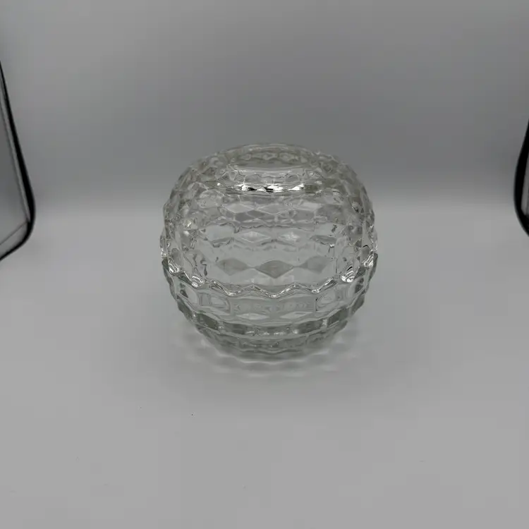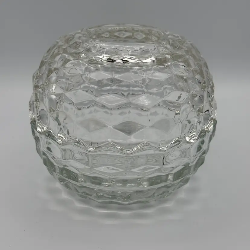 Vintage Homco Cubist Round Glass Fairy Lamp Tea Light Holder. No Chips/Cracks. Stands 4" Tall x 5" W.