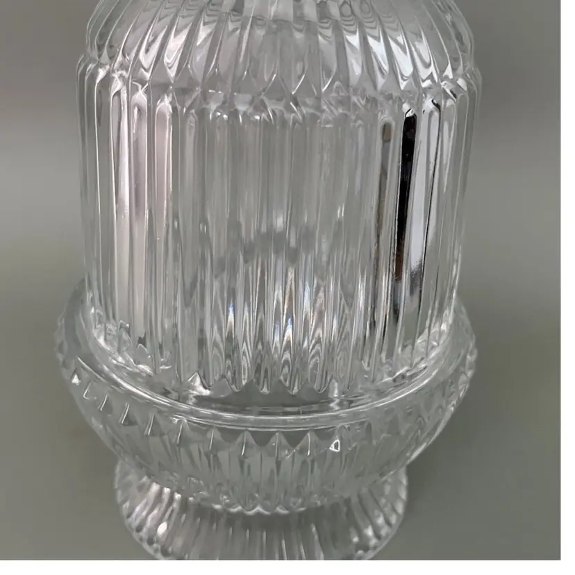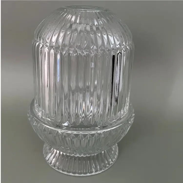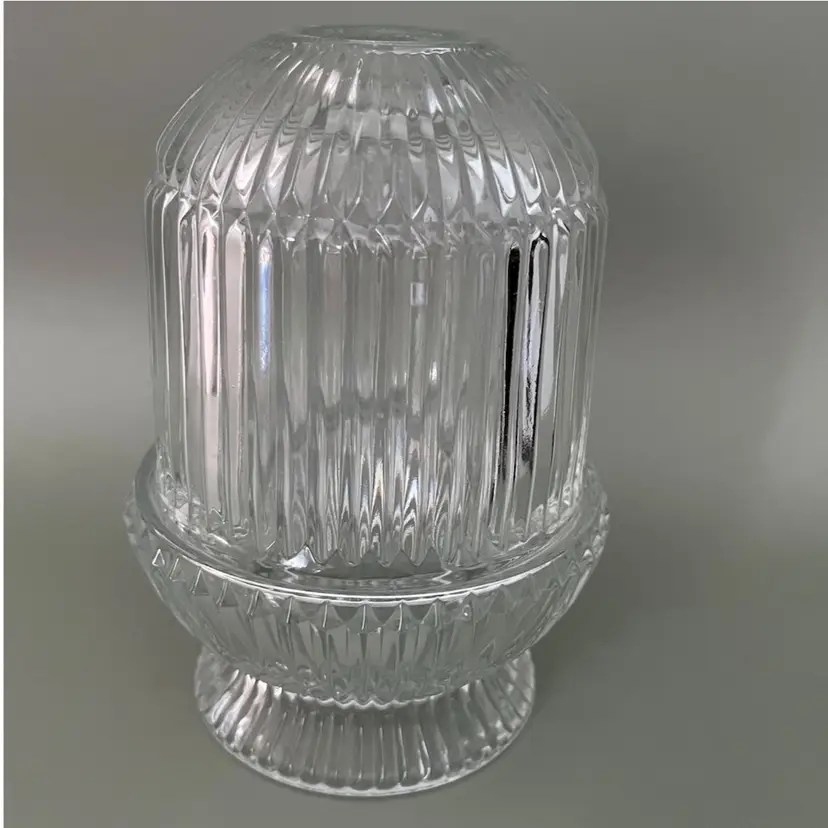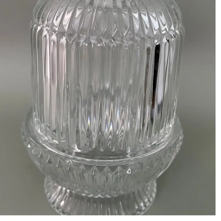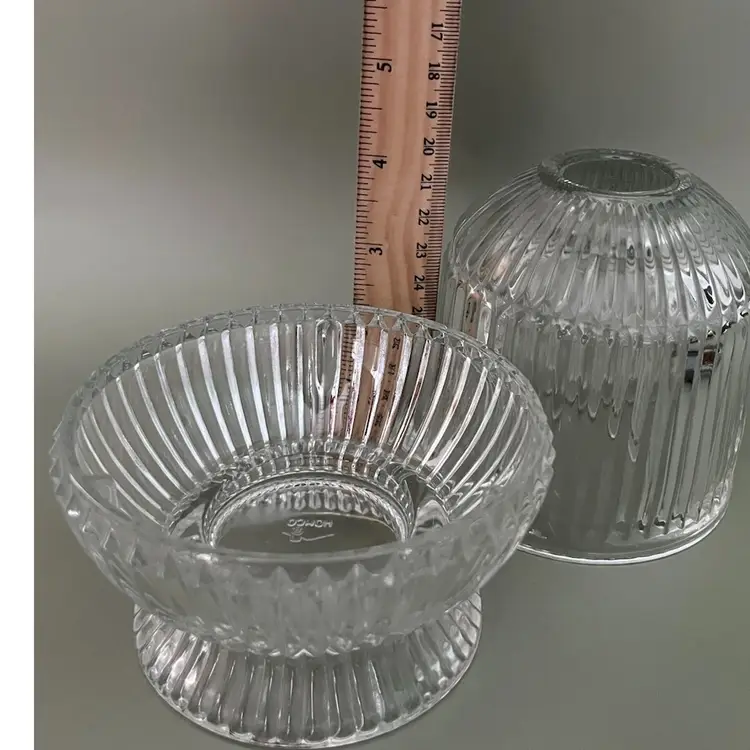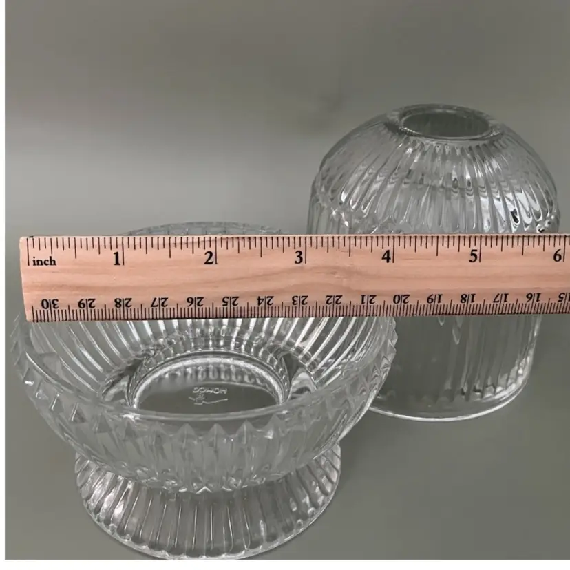 Vintage 80s Homco clear glass fairy lamp candle holder. Its unique ribbed pattern and modern style is perfect for all occasions. Perfect for votive candles or battery tea lights.