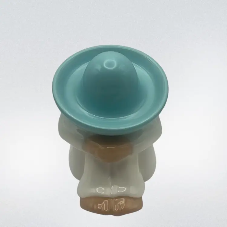 Beautiful glazed ceramic in excellent condition. Man is wearing a blue sombrero in a white robe.