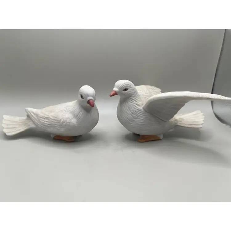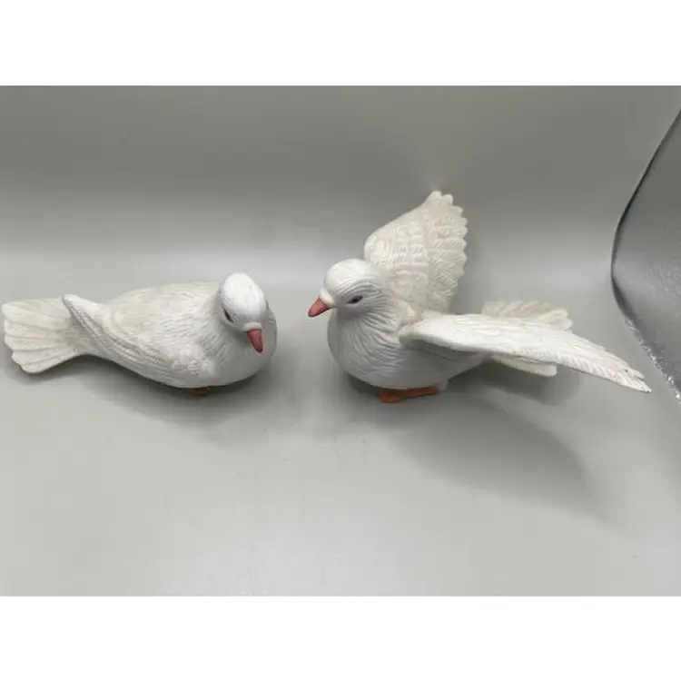 Enhance your home decor with this elegant set of two vintage white bisque porcelain dove figurines. Perfect for adding a touch of serenity and charm to any room, these beautifully crafted doves are ideal for display on shelves, mantels, or as part of a centerpiece. Condition: Excellent vintage condition with no visible wear. Size: Each dove measures approximately 5 inches long.