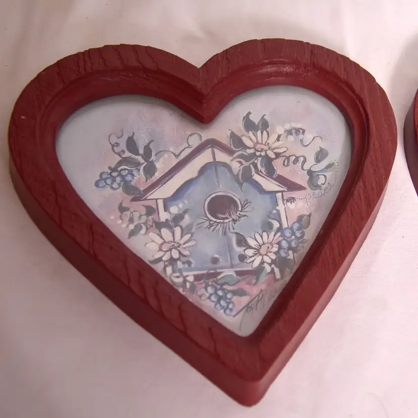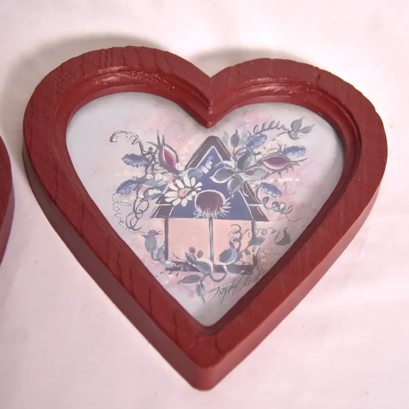 Vintage Home Interiors Heart Shaped Birdhouse Pictures Set of 2