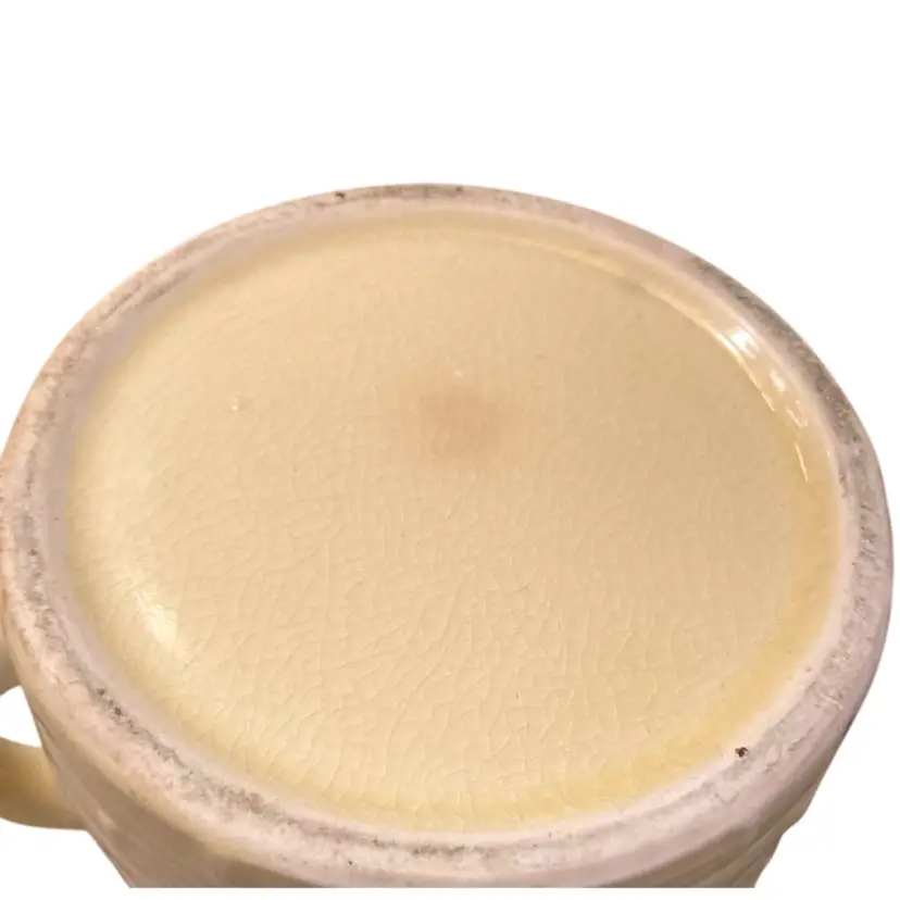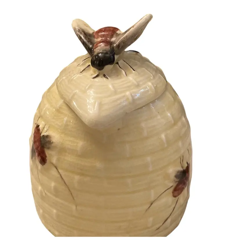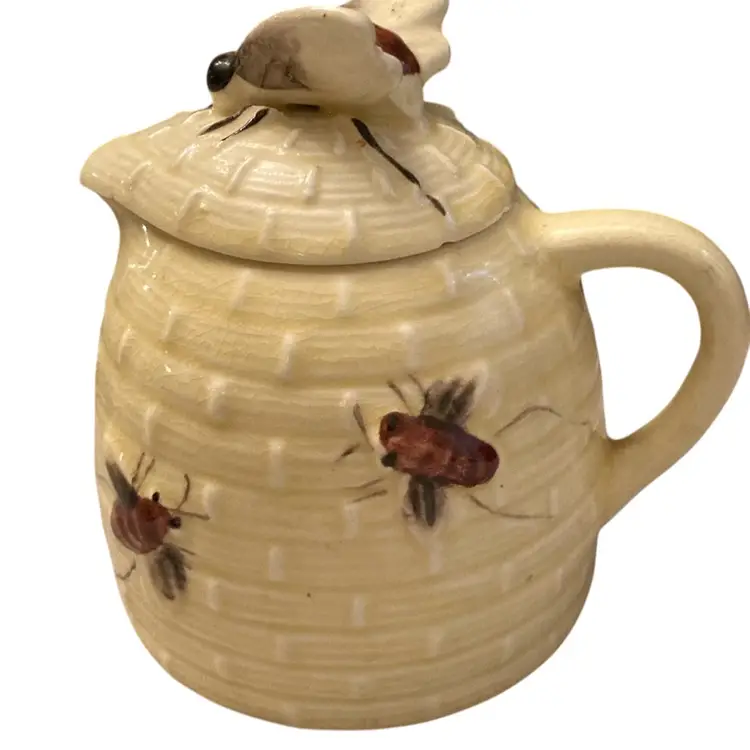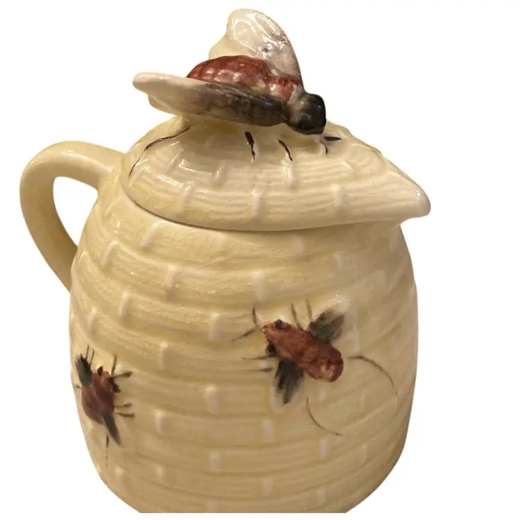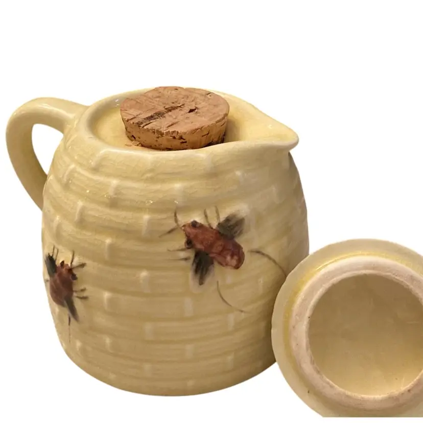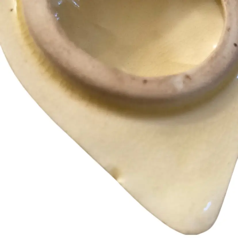 4” x 4” yellow basket weave design. Has cork under lid. Has tiniest little chip on underside of lid as shown in last picture.