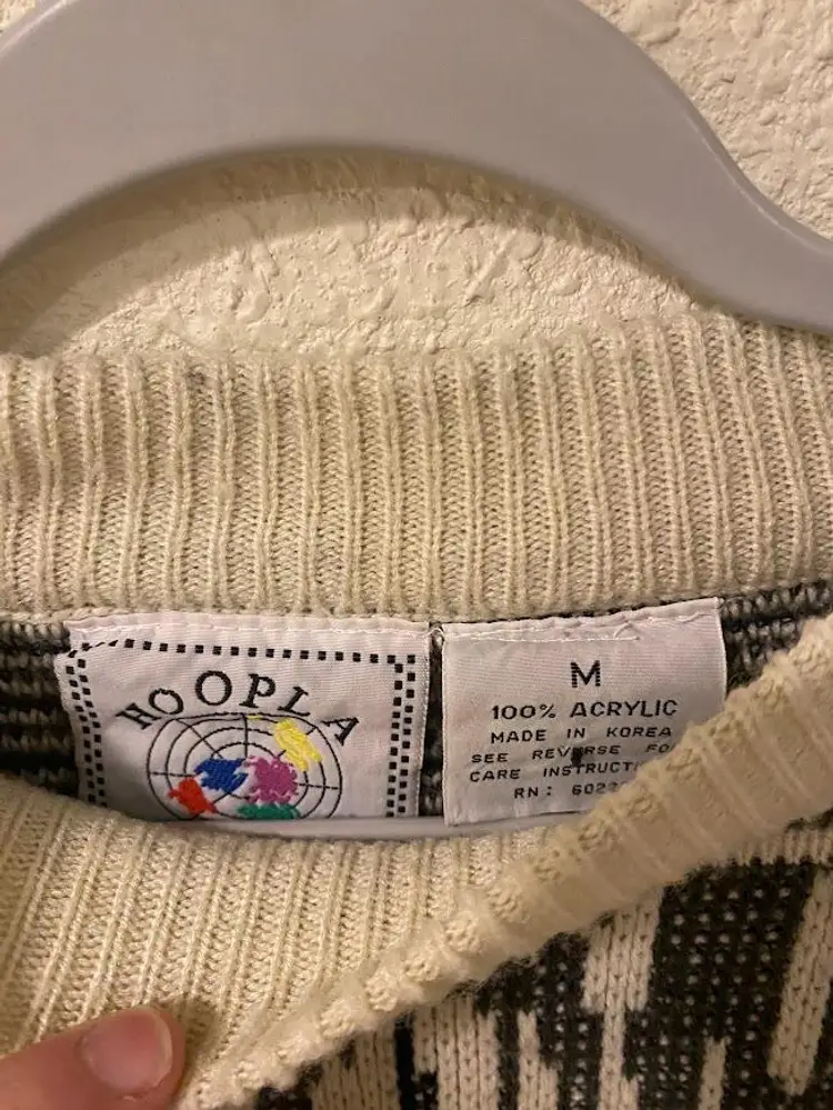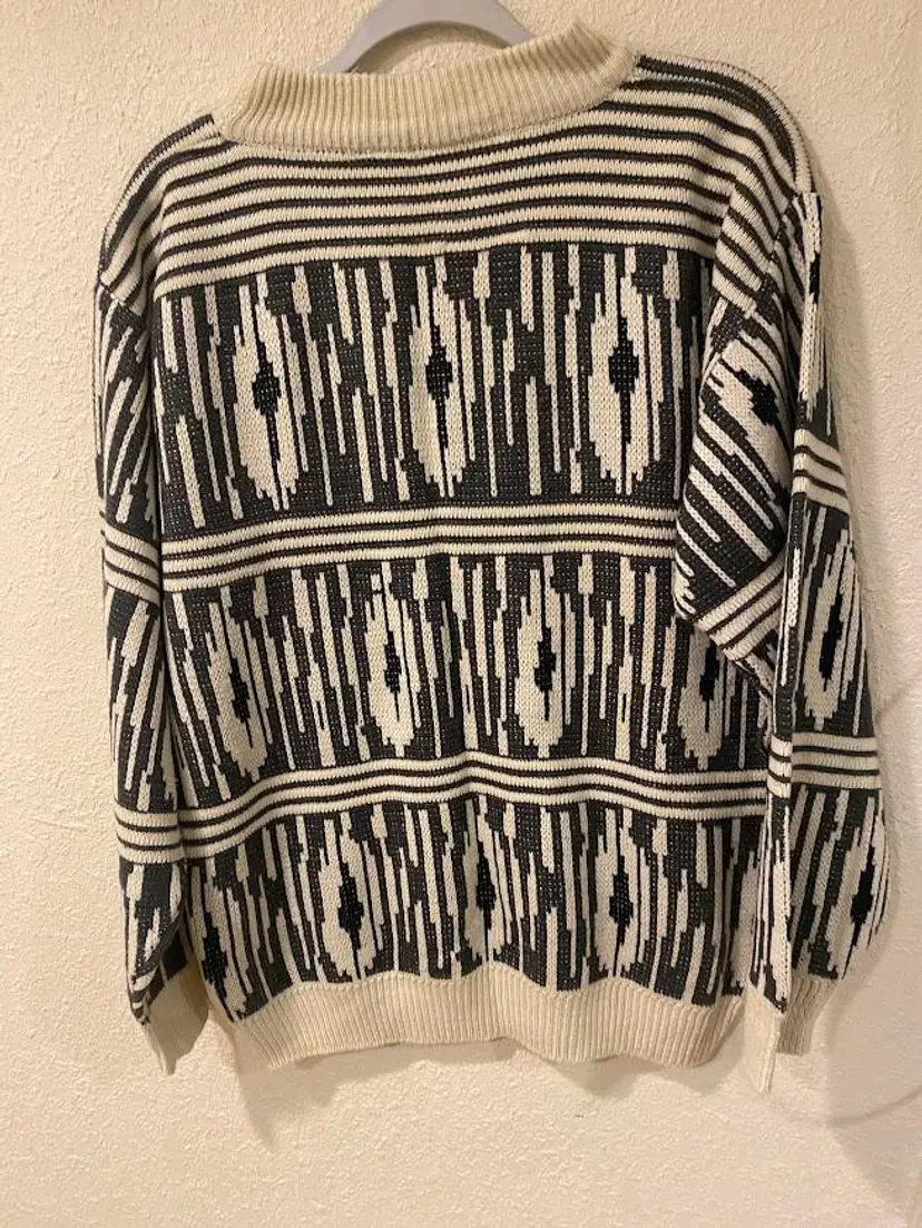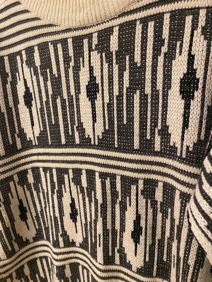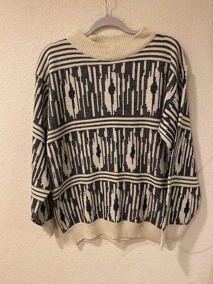 Vintage Hoopla men's (but could easily by unisex) geometric patterned crewneck sweater. Great condition. Size M. Pit to pit: 21". Total length: 27.25".