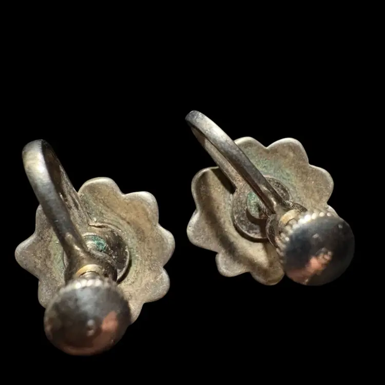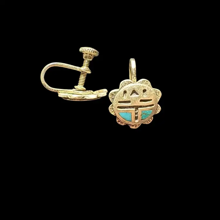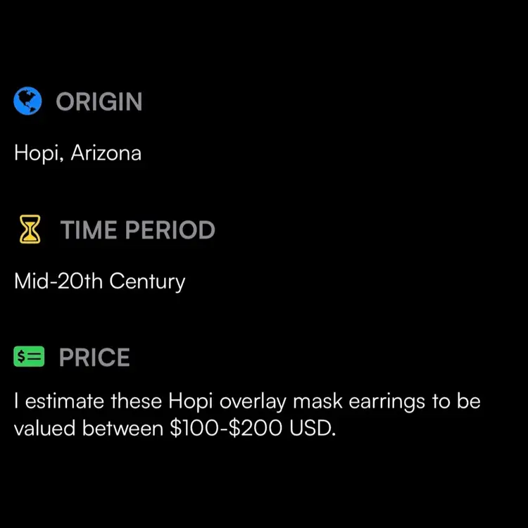 These earrings, with their stylized mask design and inlaid blue stones, are representative of classic Hopi artistry. The use of sterling silver and the distinctive overlay technique point to authentic Native American craftsmanship. Such pieces are highly sought after by collectors for their cultural heritage, artistic merit, and the skilled labor involved in their creation.