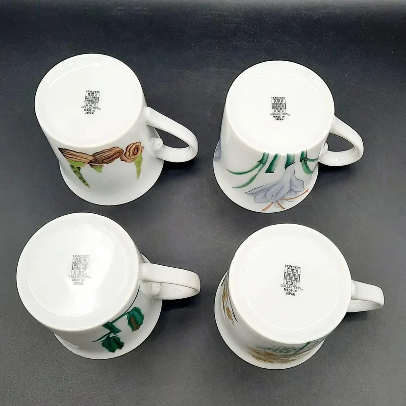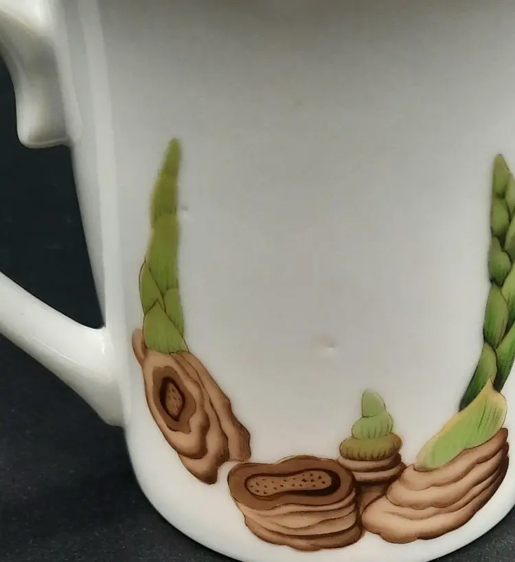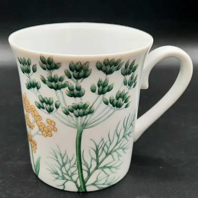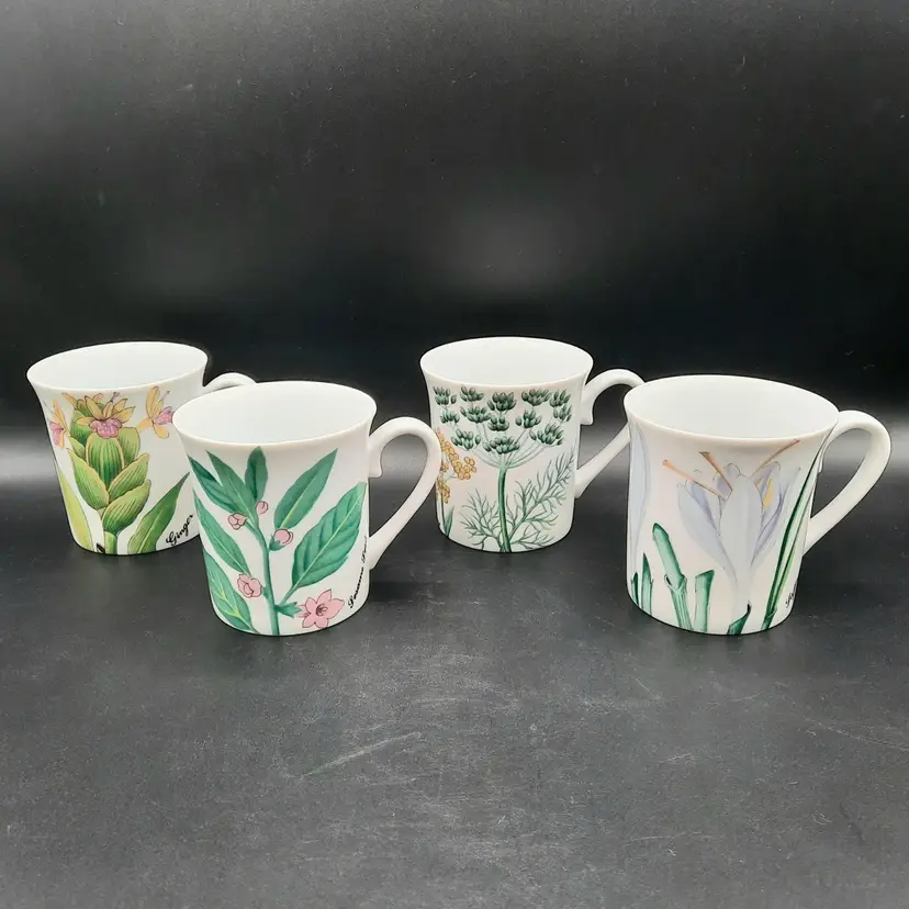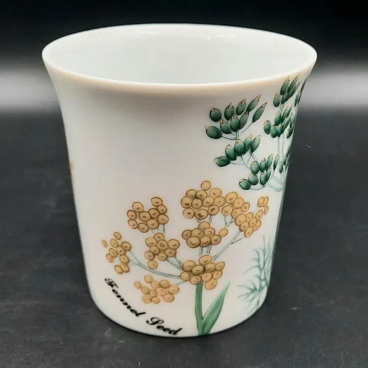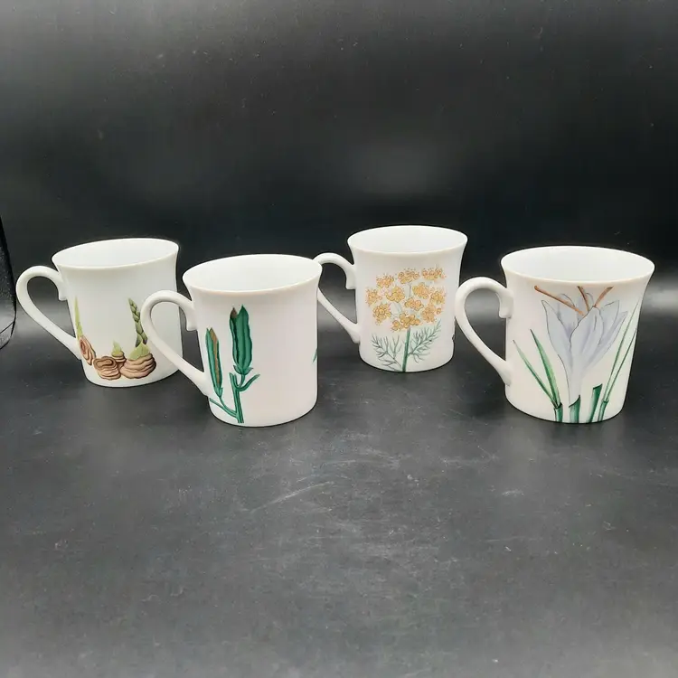 4 different herb designs on these 3 1/2"H mugs, great condition with a few pinholes and some light scuffs on a couple of the rims I also have a listing for 5 plates in this pattern