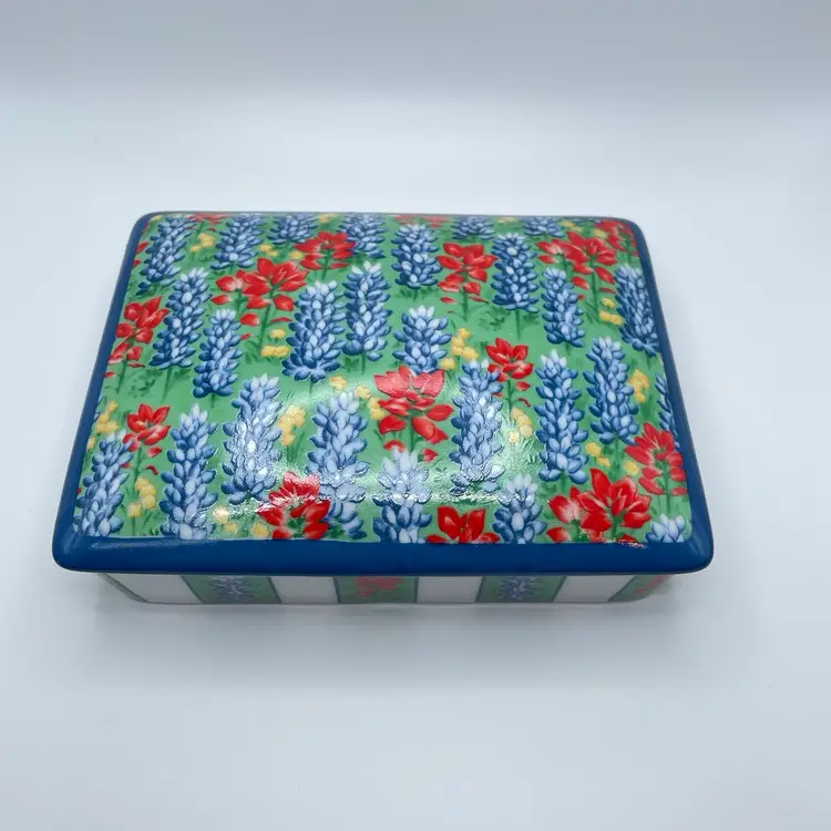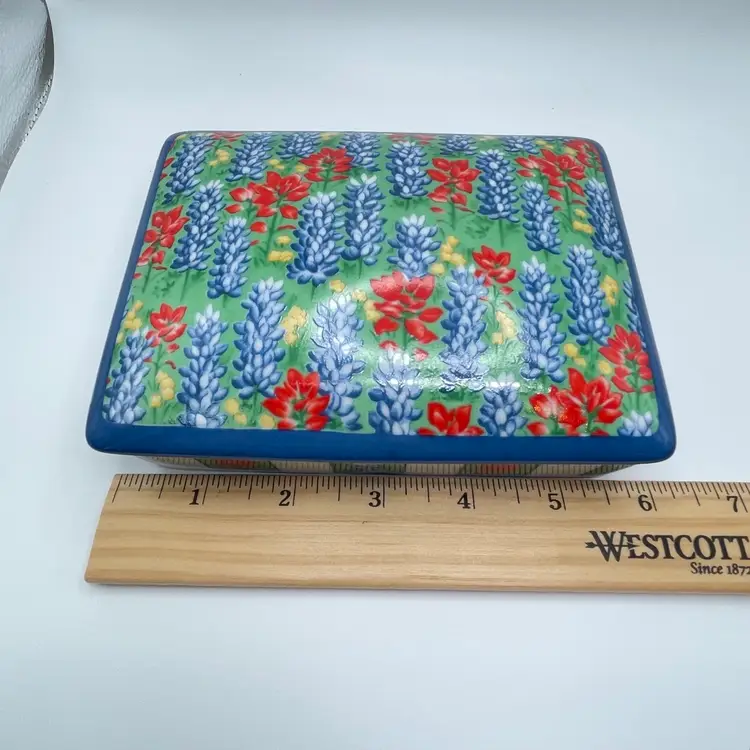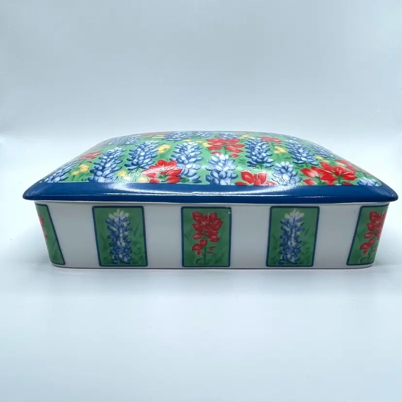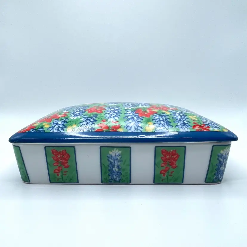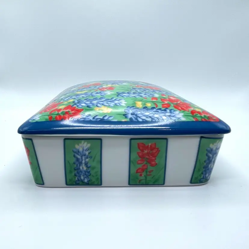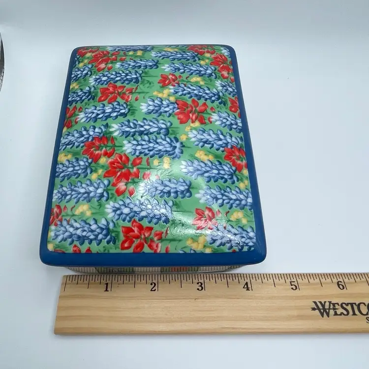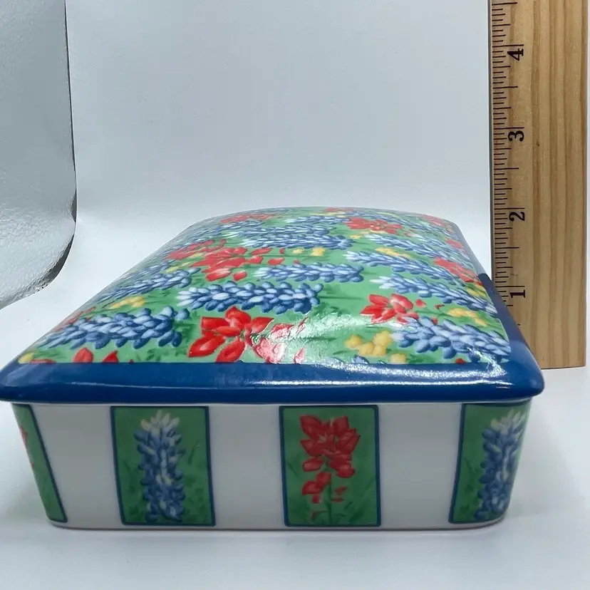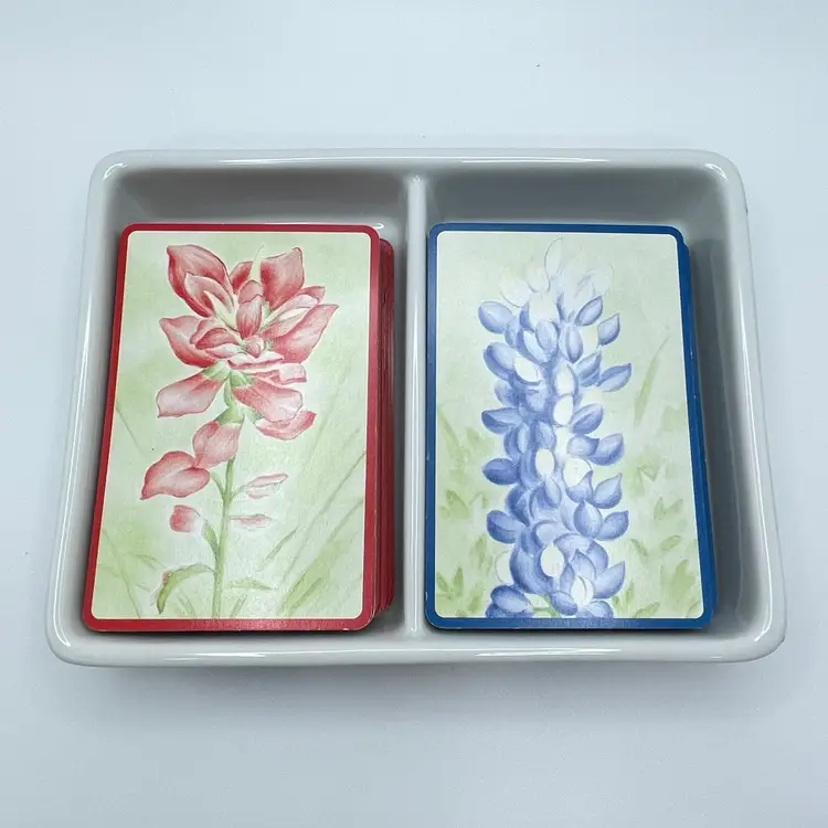 This is a vintage Horchow ceramic playing card box with 2 full decks of cards. The images on the cards match the floral pattern on the box. Measures approximately 6" long x 4” wide x 1” tall. Made in Japan. No chips or cracks. #HC1