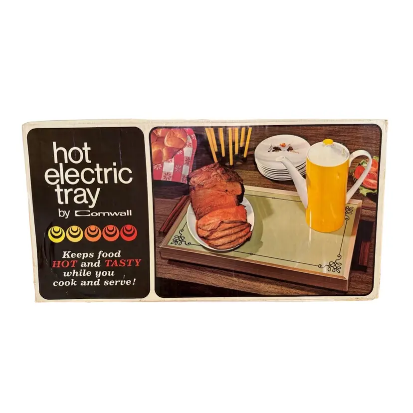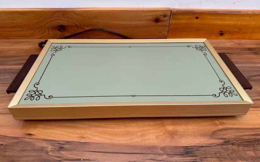 Vintage Hot Tray Avocado. Working condition. Cord in good shape. Original box. Box has wear/tear. Box is approximately 19x8.5x2 inches. I don’t think it was ever used!
