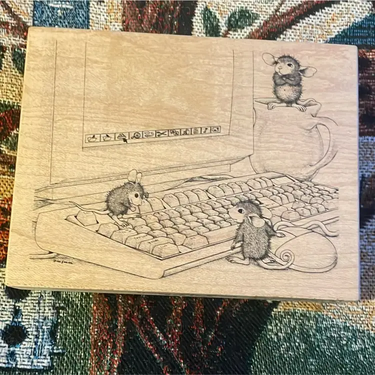 This Listing is for Vintage 1999 “Computer Tutors” Wooden Block Rubber Stamp by Stampa Rosa from the House Mouse Collection.