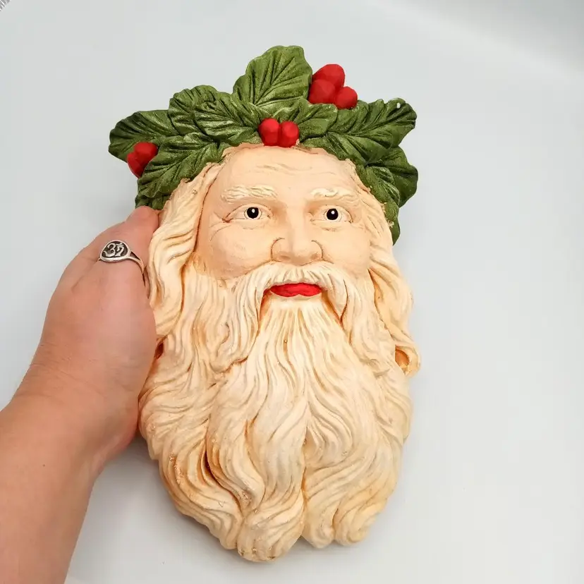 Vintage House Of Lloyd Chalkware "Old World St. Nick" Plaque, Santa IOB Christmas