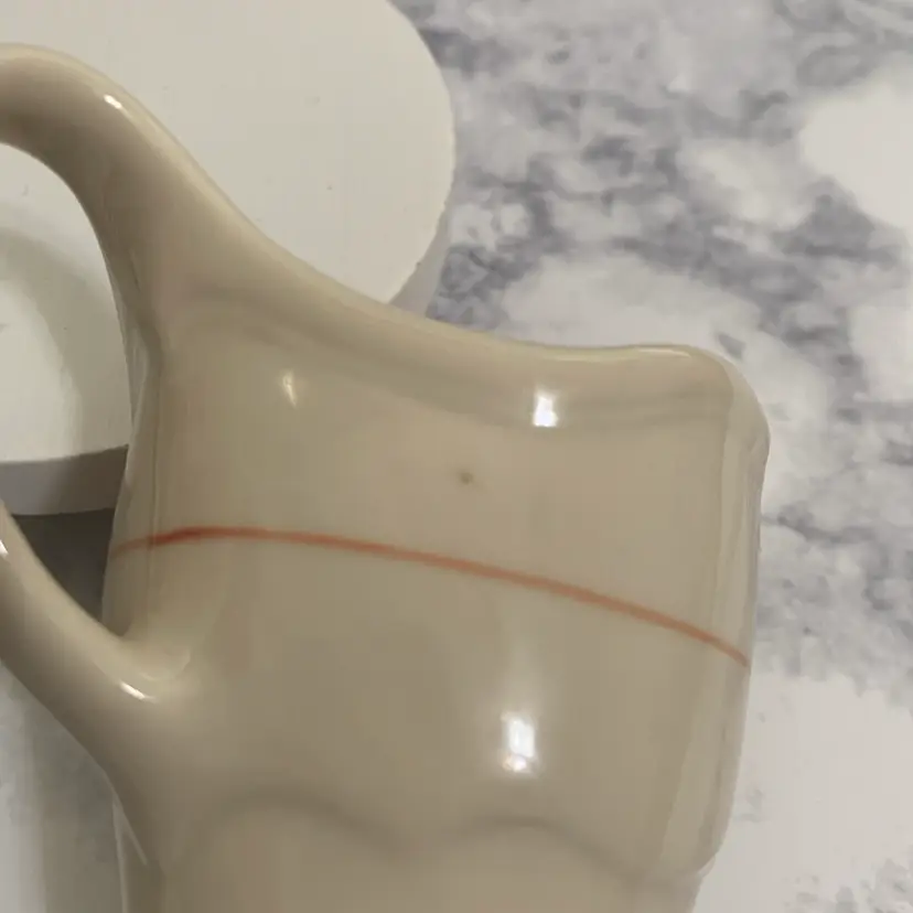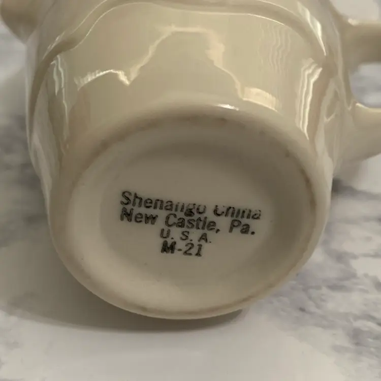 Pretty rare little restaurant ware creamer. Stands 3” tall. Shenango China- New Castle, PA. Has one small flea bite as shown in photo. No chips, cracks or crazing.