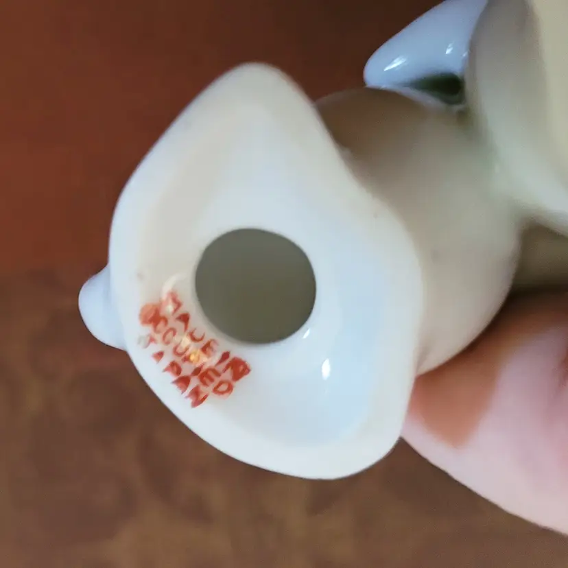 These shakers are actually one piece, and were made in Occupied Japan. Has the original cork stoppers. No chips or cracks, and from a smoke free home. Please refer to the pictures for its condition and size. Approx. 3.25x2.5x1.25.