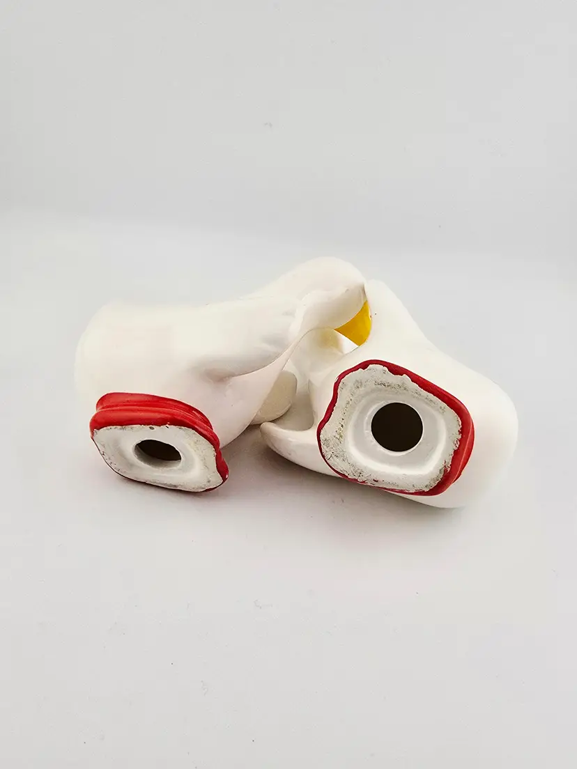 No corks. Crazing and some paint loss.no major chips or cracks. Measures 3 inches tall
