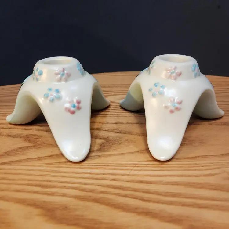 The candle holders are in excellent vintage condition. There are no chips, cracks, crazing or repairs. They are an estate sale find and is stored in a smoke free and pet free environment