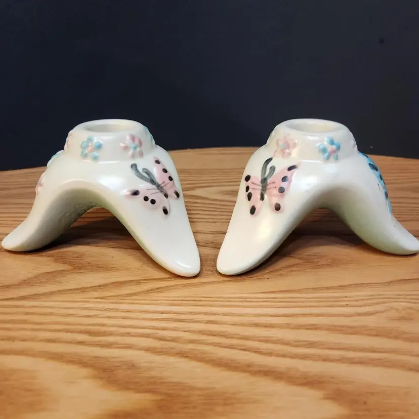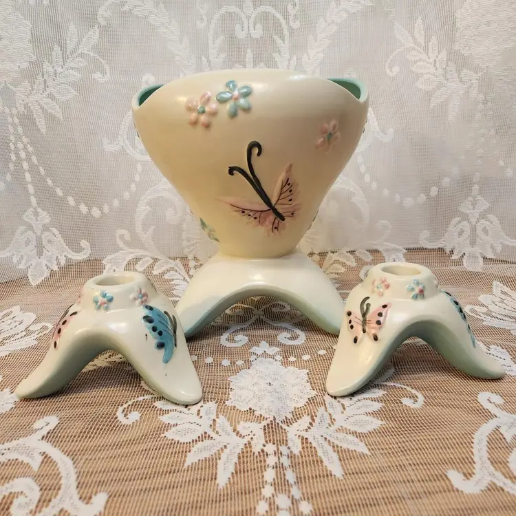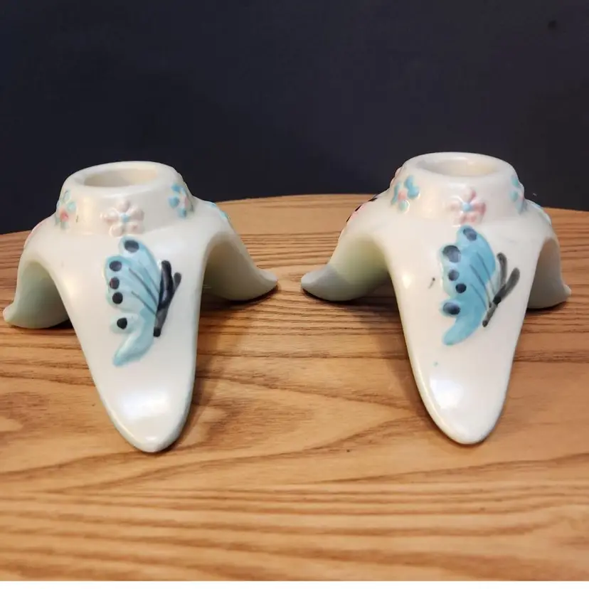 Vintage Hull Pottery Candle Holders B22 Butterflies Candlesticks Butterfly MCM.