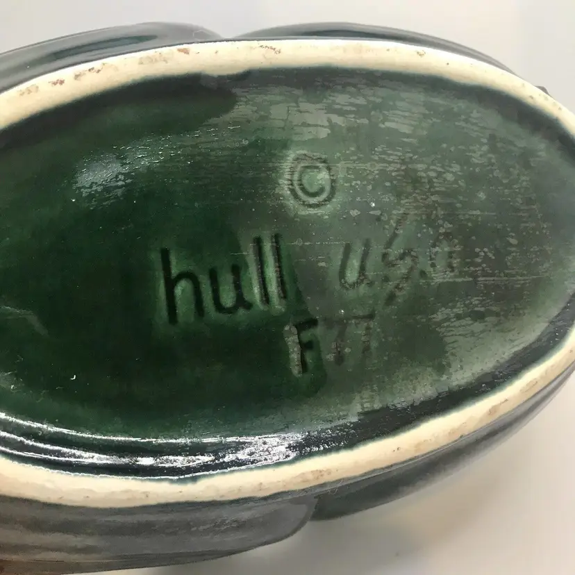 Marked on bottom F77 hull U.S.A. Teal & Dark Green colour drip glaze Good condition - No chips or cracks