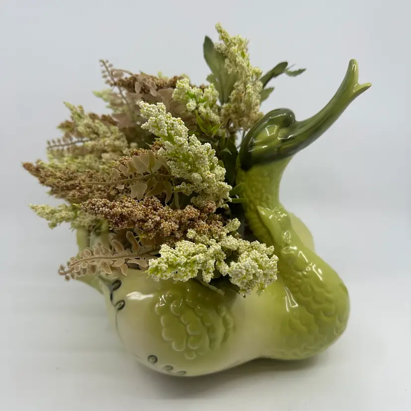 Approx 9.75” tall, no chips or cracks, florals not included.