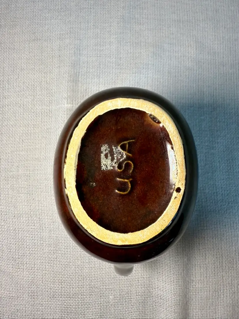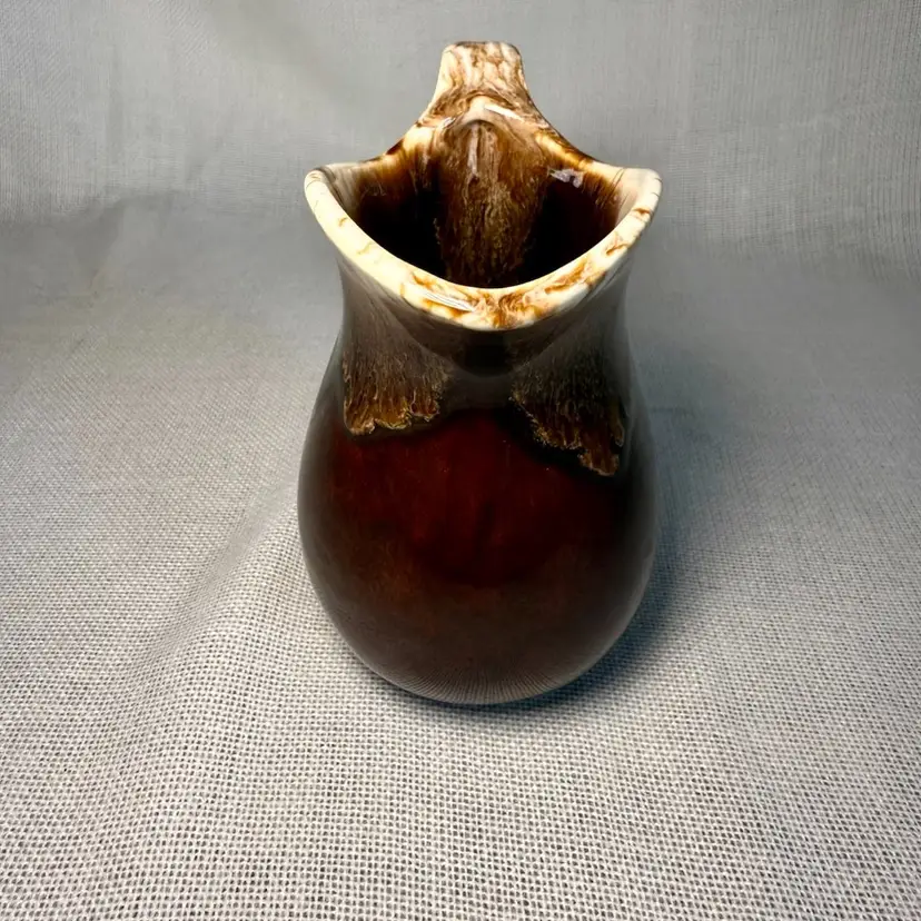 Vintage brown drip glaze pitcher from Hull Pottery Stands about 5” tall