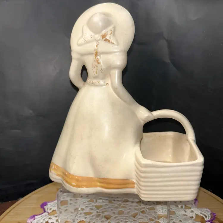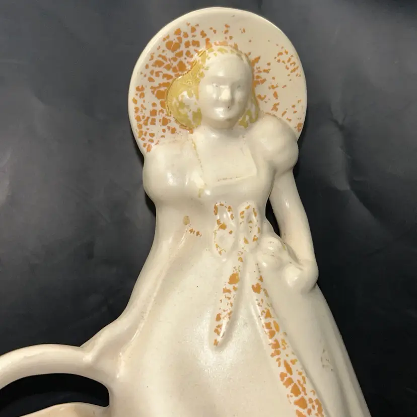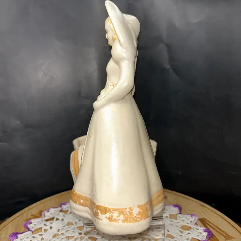 Model #954. Made in the 1940s. She is in excellent condition, has no chips or cracks. However, cold paint is quite worn. The piece is 8.5” tall x 6.5” long x 4” wide. Marked USA, 945.