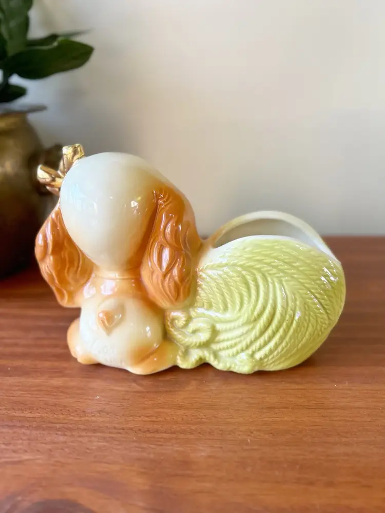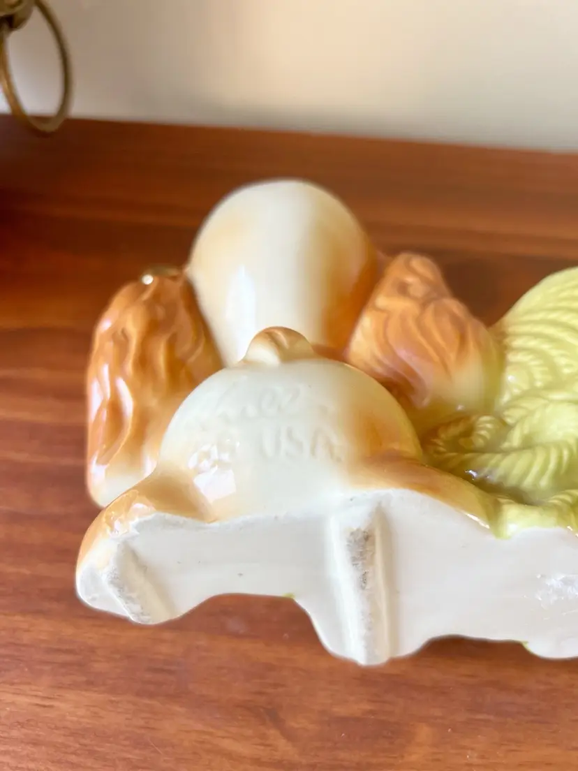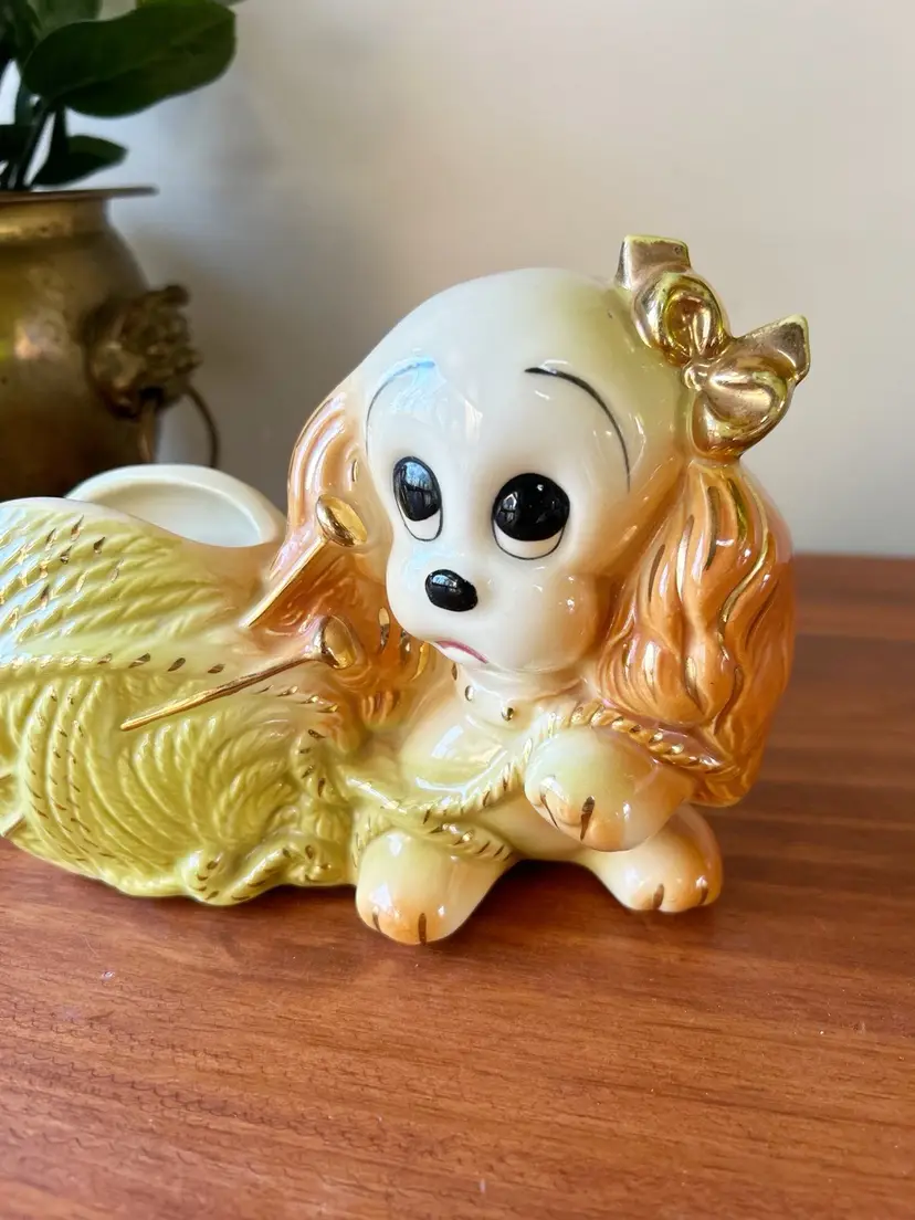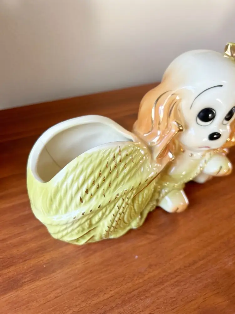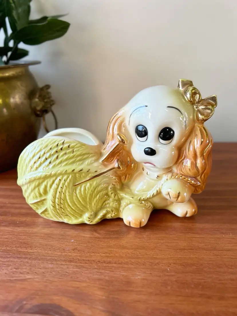 Vintage Hull dog planter. Fracture line on the back of the planter (see photos). Otherwise, in good condition. Measures 8 inches wide and 6 inches tall.