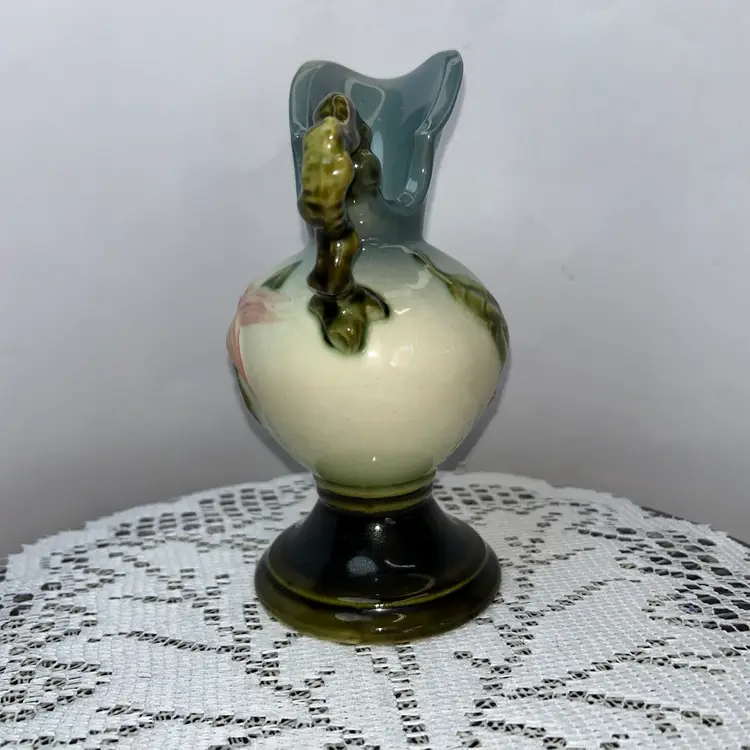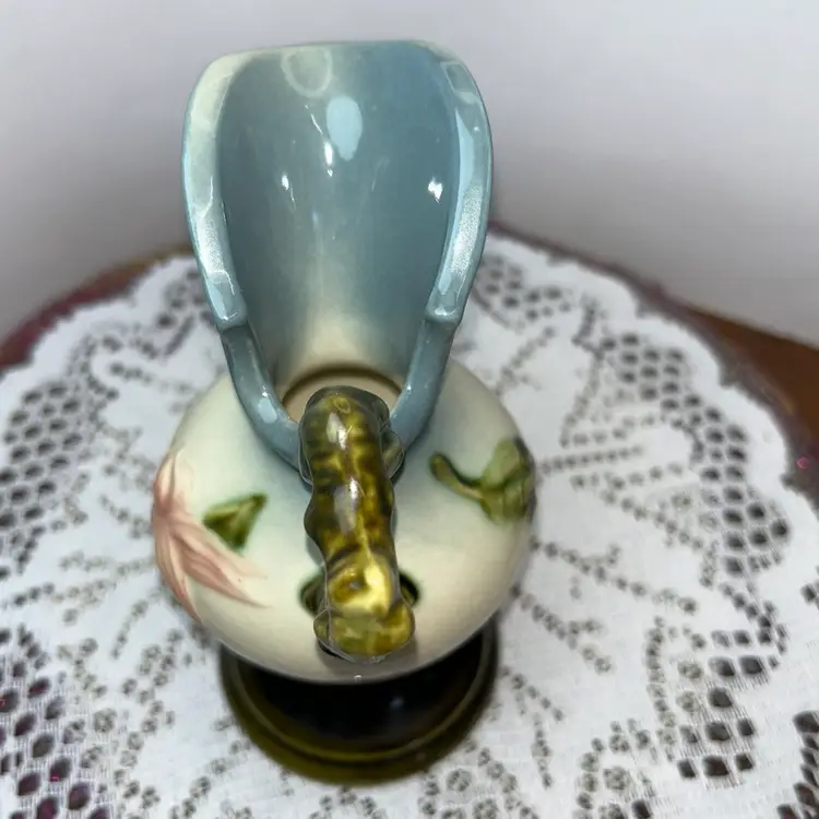 Made 1952-1954. 6.5” tall, 4.75” wide from spout through handle, 3.25” diameter base. From the Hi-Gloss era. Excellent condition. No issues whatsoever. In the 2006 Hull Pottery book by Warman’s lists the value from $150-$200 on page 219. Sad it has dropped so significantly.