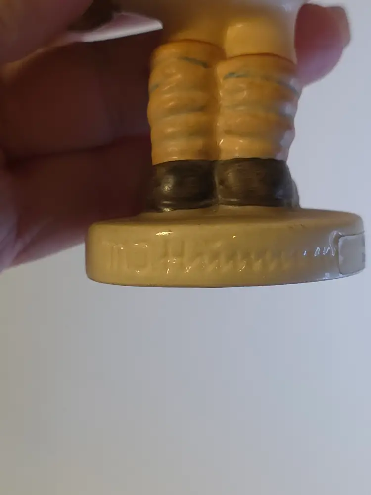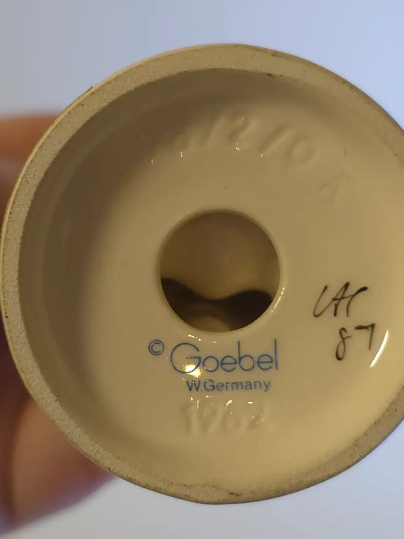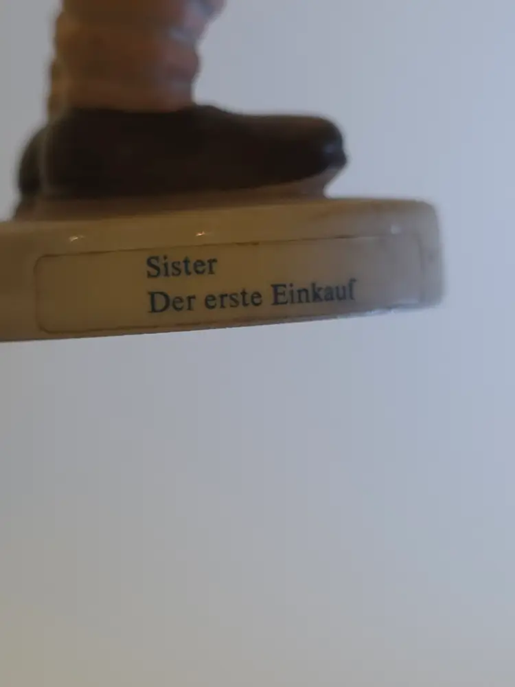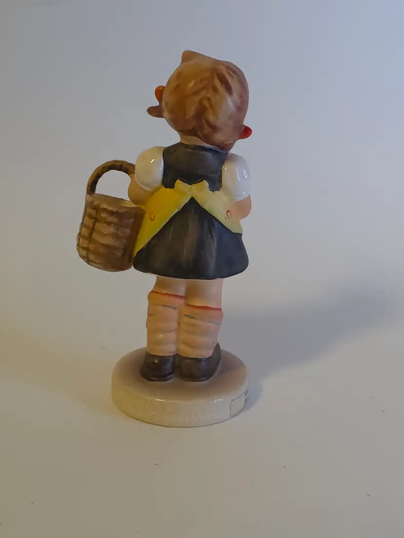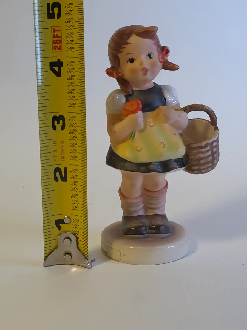 This Vintage Hummel "Sister" Figurine from 1962 depicts a sweet girl holding a basket and flower with red bows in her hair. The ceramic figurine is signed by the renowned brand Hummel and features hand-painted details in a matte finish. Made in Germany, this limited edition piece is a charming addition to any room, especially a bedroom or living space with a children's theme. As a collectible item, it is a nostalgic piece that captures the essence of the 1960s era.